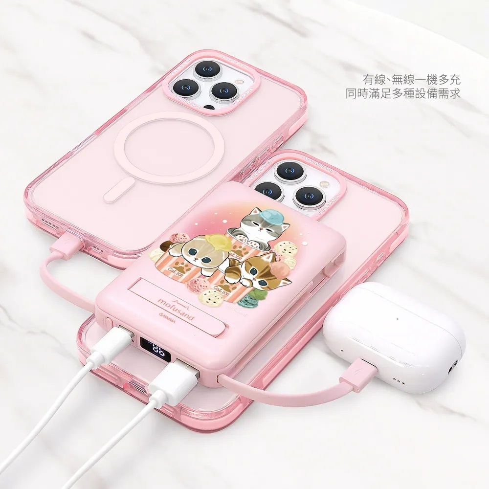[3C CCC 認證] GARMMA - Mofusand 磁吸帶線五合一行動電源 10000mAh [粉紅色 / 藍色]