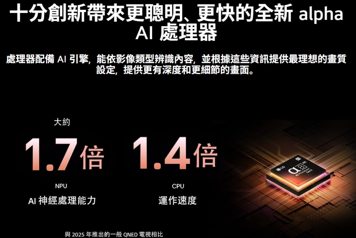 處理器︰α8 AI Processor 4K Gen2 - HDR