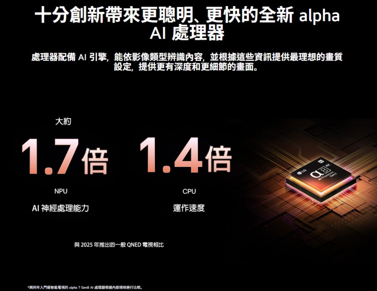 處理器︰α8 AI Processor 4K Gen2 - HDR