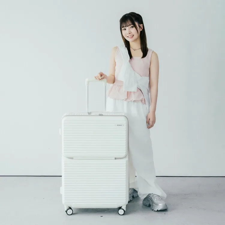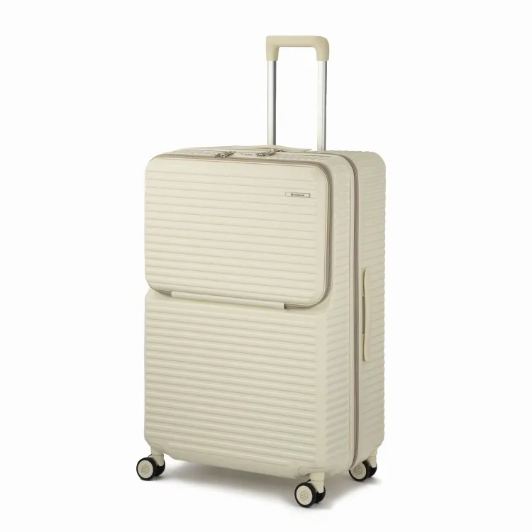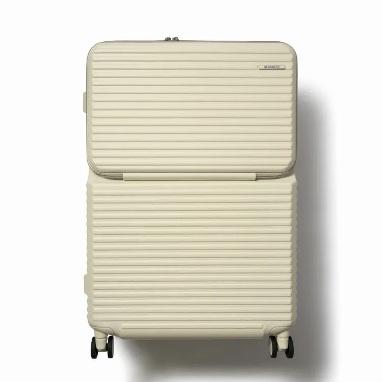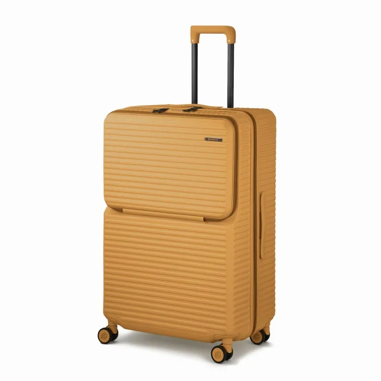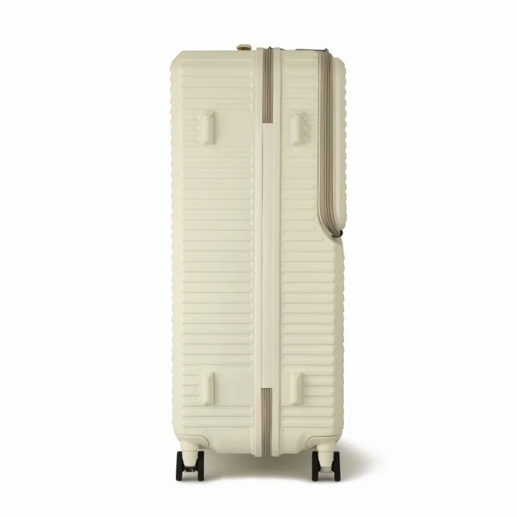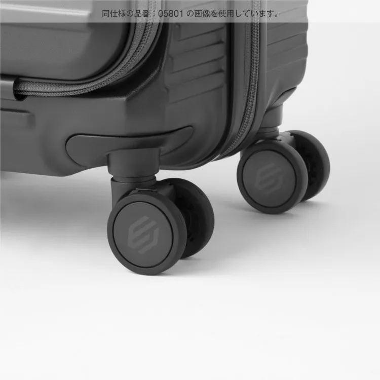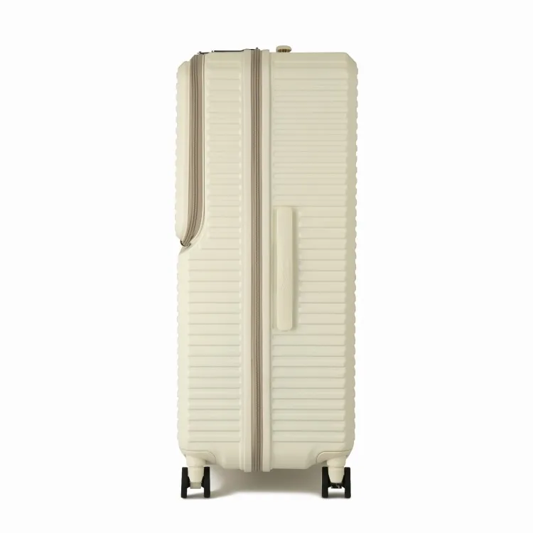 - 這款行李箱配備時尚的前口袋和便捷的腳輪止動器。