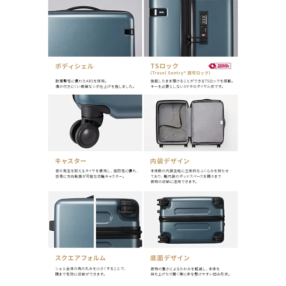 - 圓角的簡約設計,可將行李收納到各個角落。