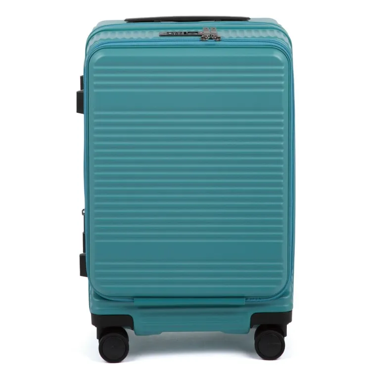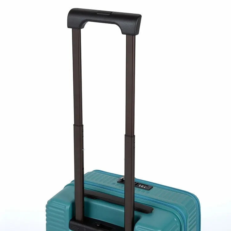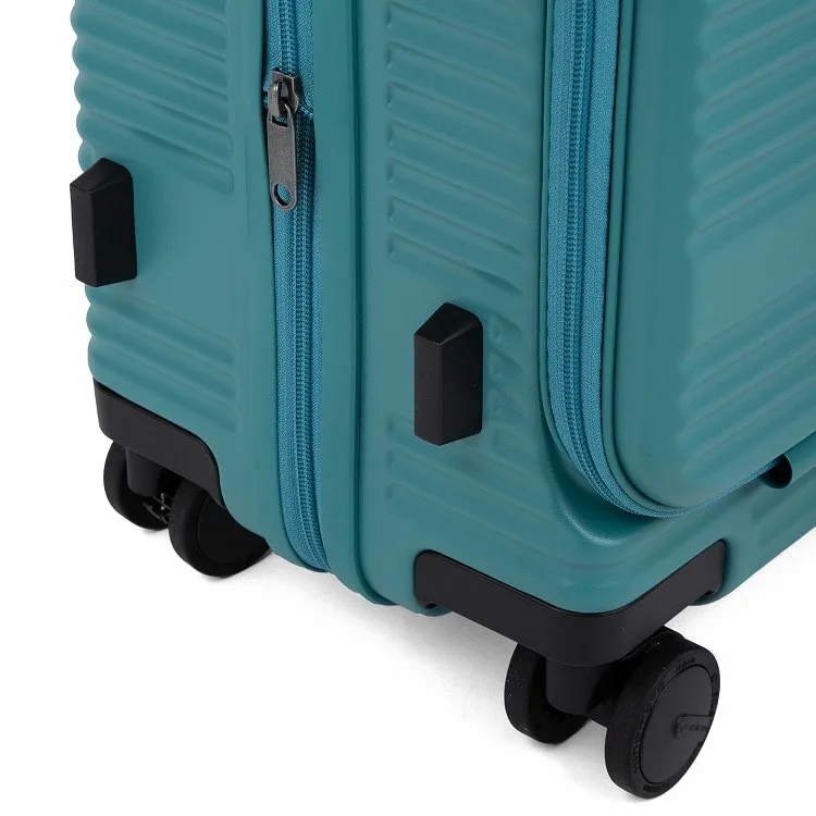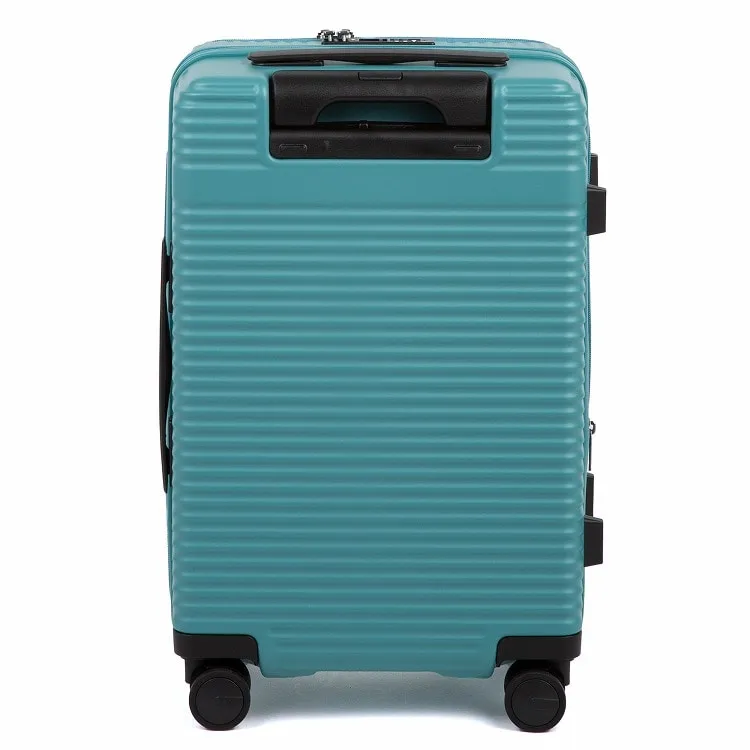 - 簡約設計,可擴展設計隨時可增加容量, 前開蓋式更有效地運用內部每個角落, 機身外殼橫紋設計,使用靜音雙腳輪配備鎖輪功能, TS密碼鎖配備。