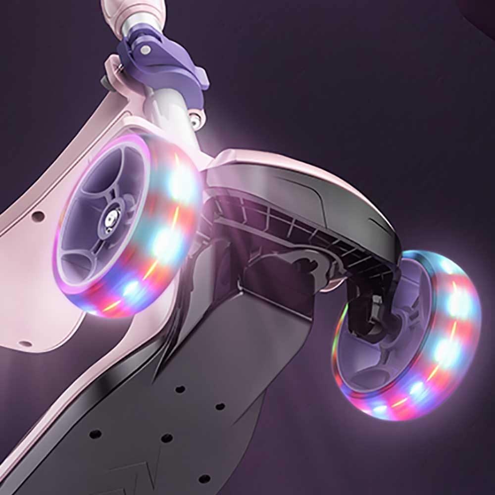 最新專為2-12歲兒童設計的彩輪三輪接疊版滑板車,可折疊易收藏,讓孩子從小培養運動習慣,滑板車踏板穩實,可貼合不同身高,高韌防撞,耐磨穩定,新增可放腳避水板︰平時滑行時可防止輪子濺水,坐著玩耍時候可把腳放上面,鋁合金底部︰可承受100kg左右承重力。