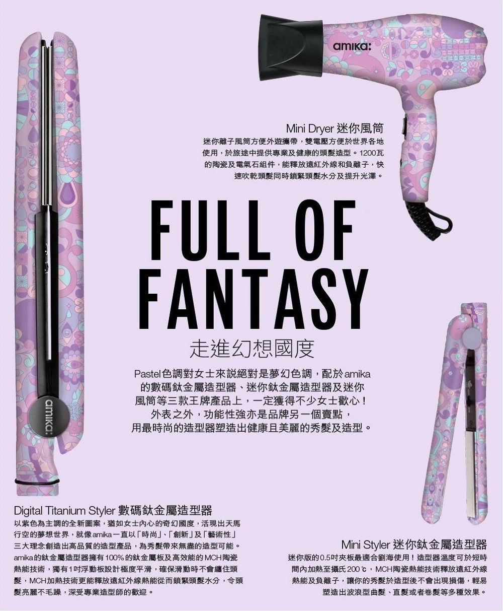 配備最嶄新的科技及創新物料,輕便體積易於攜帶,讓你不受地域限制塑造理想造型。而使用時釋放的遠紅外線熱更可令造型後的髮絲亮麗健康。鈦金屬板輕盈耐用,表面如絲般順滑,於發上輕輕滑動,就能輕鬆做出筆直、鬈曲或波浪造型。