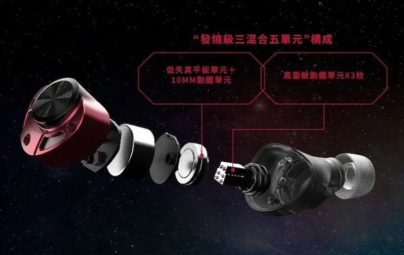 - 單元配置:三混合五單元配置(10mm動圈+6mm平板單元+3枚動鐵單元)