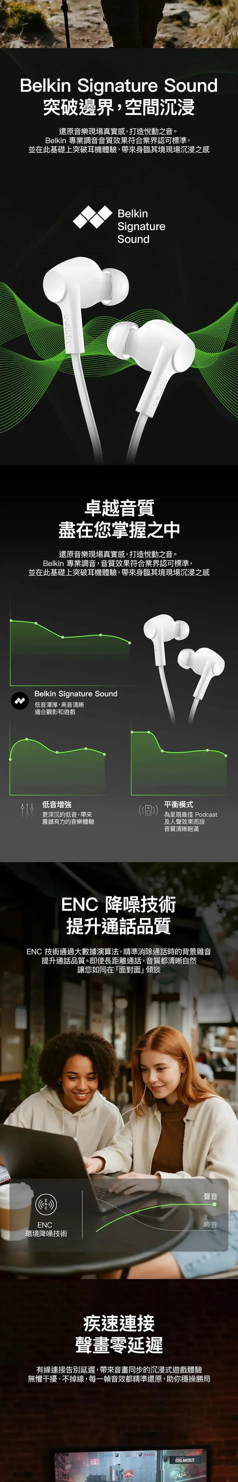 - Belkin Signature Sound 提供清晰均衡的音質,專為精準度與清晰度而調校