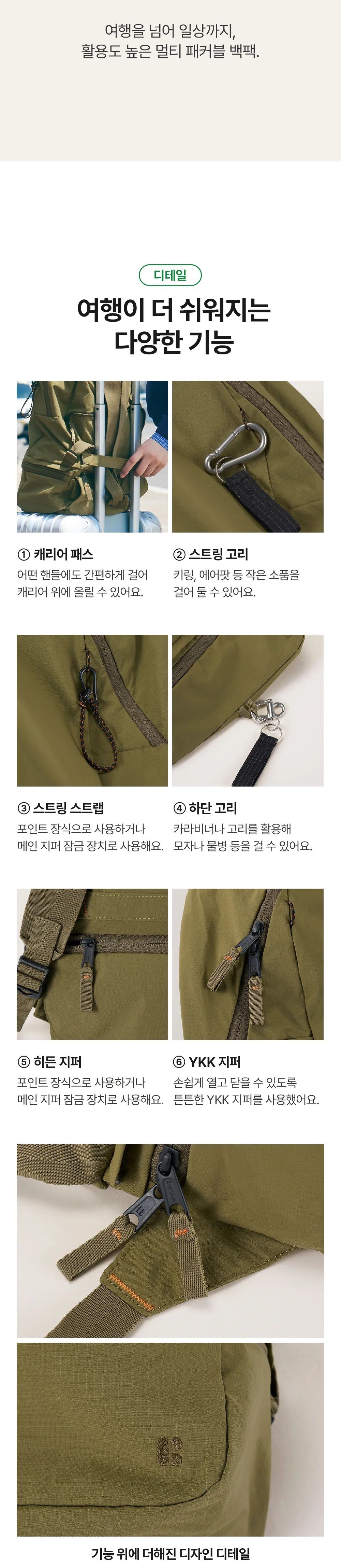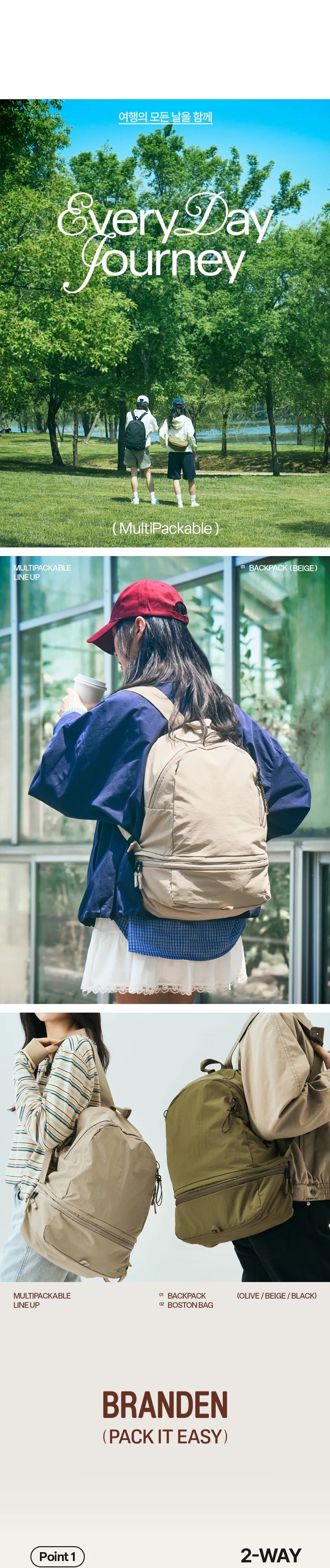 Branden - Multi Packable Backpack 變形背囊 [米色/橄欖綠/黑色]