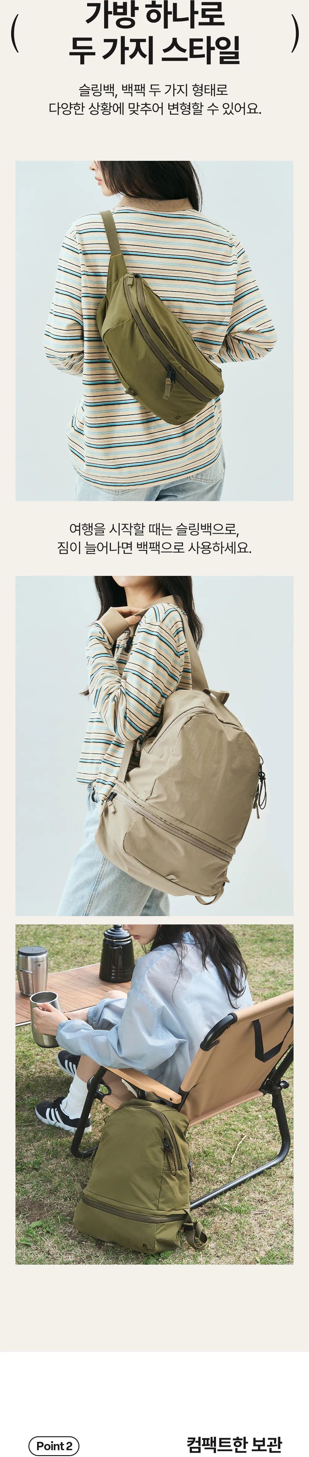 - 2種穿戴方法: 斜孭袋, 背囊