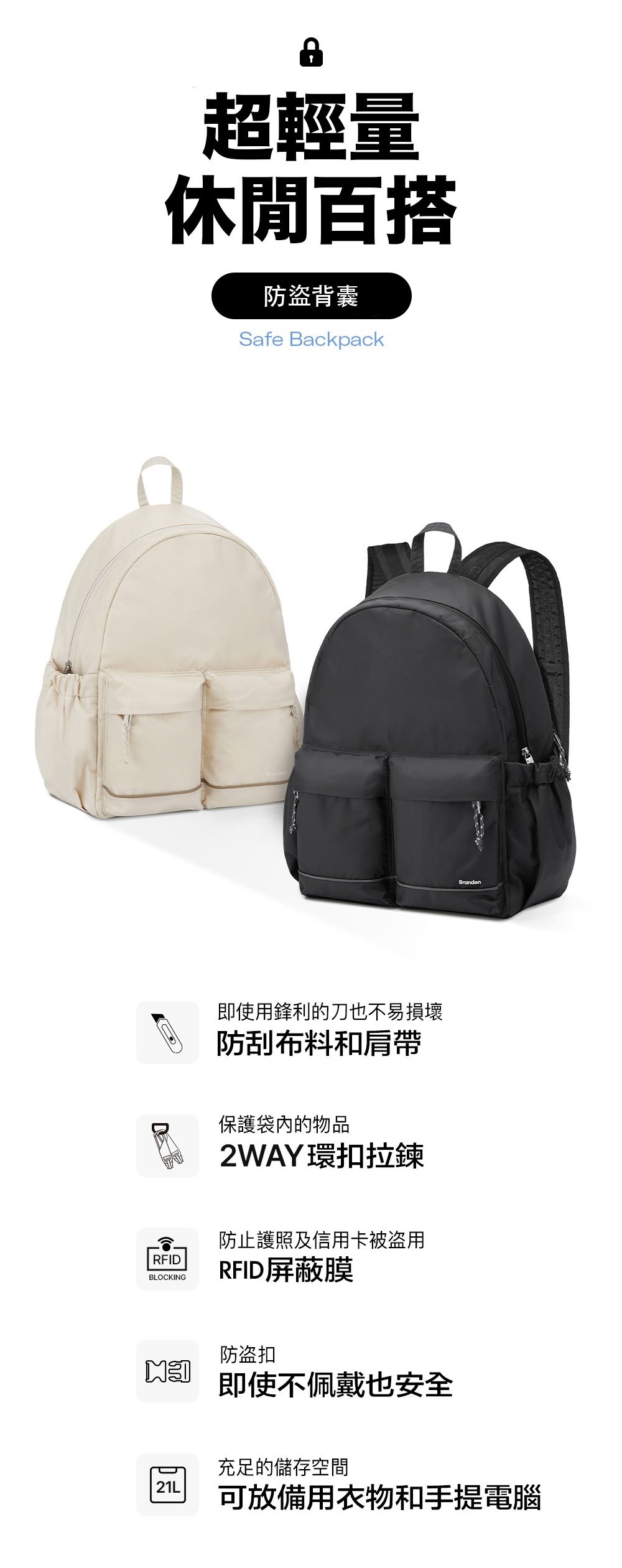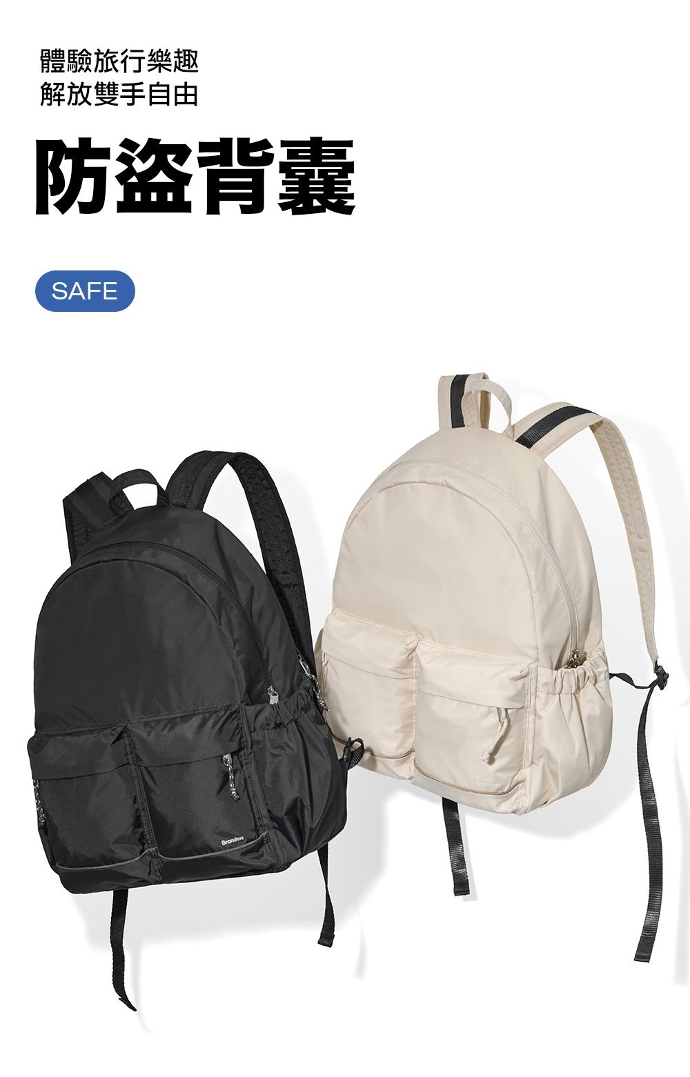 Branden - Safe backbag 旅行袋 防盜背囊 [黑色/淺米色]
