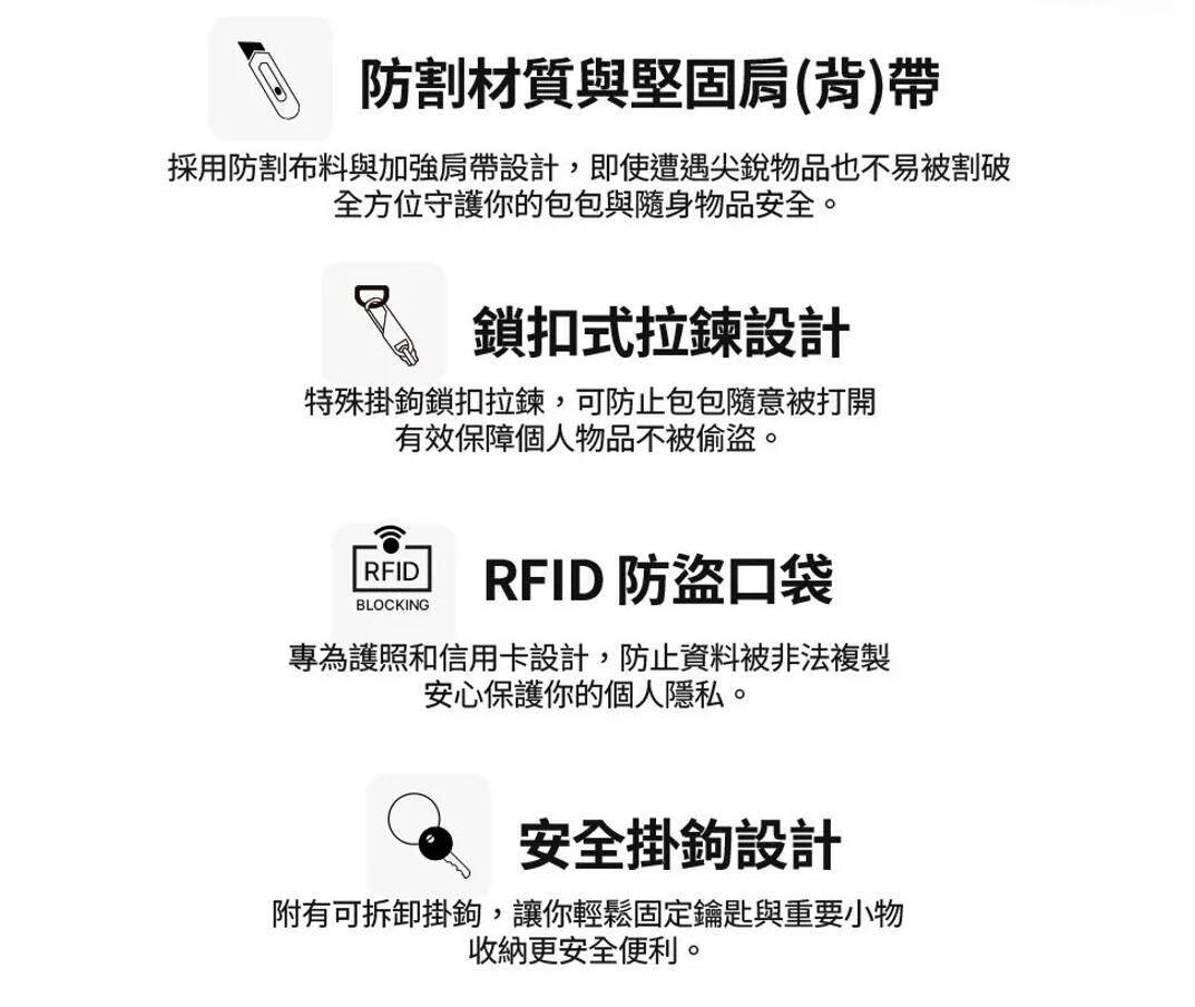 Branden - Safe Cross Body Bag 旅行袋 + 斜揹袋 [淺米色/卡其色/黑色]