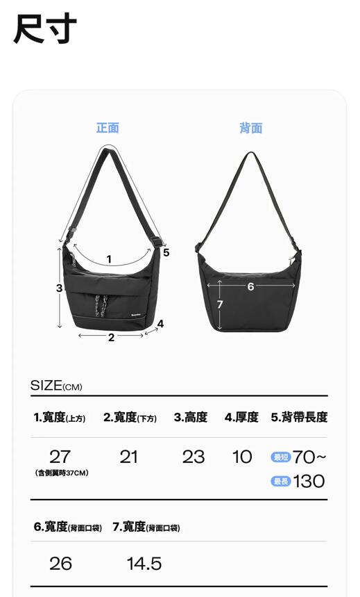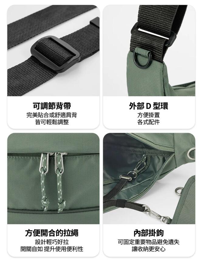 - 材質: (外層)210D 尼龍防撕裂; (內裡)UHMWPE面料; (襯裡):滌綸