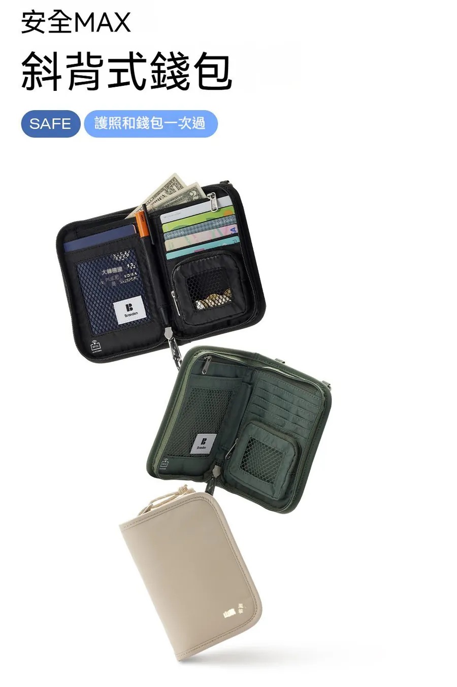 Branden - Safe Wallet Bag 斜孭防盜銀包 [淺米色/黑色/卡其色]