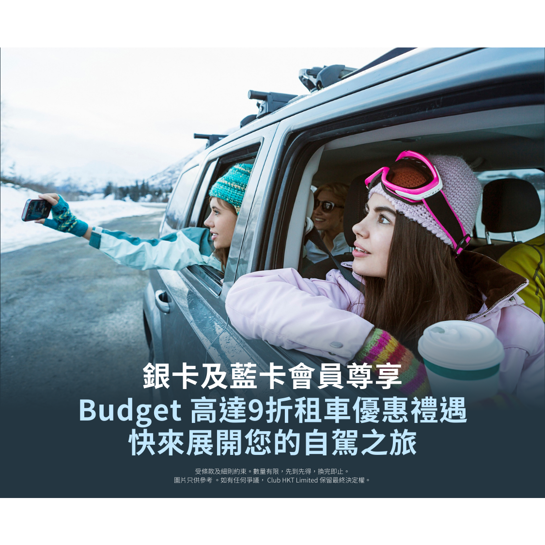 - Budget高達9折租車優惠禮遇(「獎賞」)只限The Club銀和藍卡會員(「合資格會員」) 於2025年9月10日至2026年8月31 日(「指定獎賞期限」)兌換。有關獎賞受限於以下條款與細則。