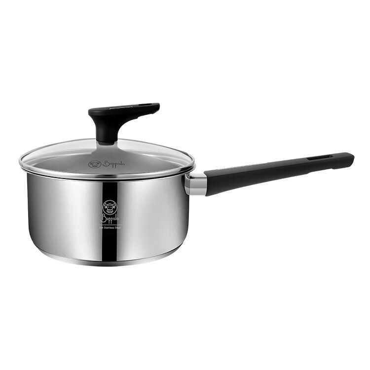 Buffalo 304不銹鋼加厚底單柄煲連玻璃蓋 18 x 9cm / 2L (35818P)
