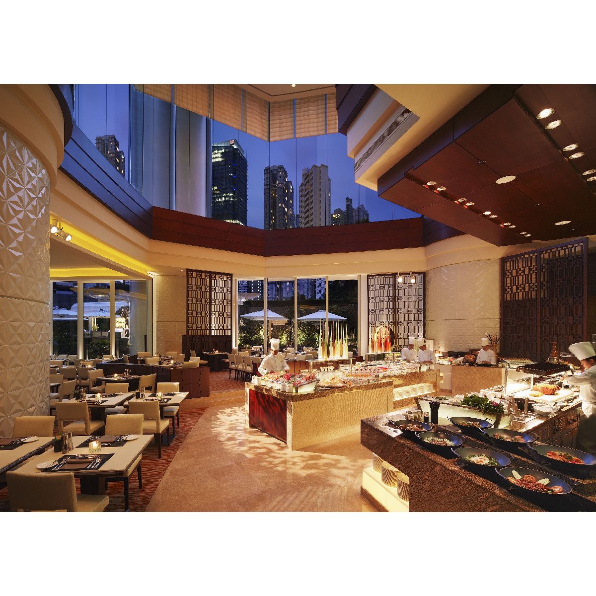 鮮味十足的冰鎮海鮮有鱈場蟹腳、海蝦、青口及蜆,還有健怡沙律吧、日式刺身壽司、開胃前菜、中式點心及燒味、亞洲美饌等,熱騰騰的馬來西亞喇沙由廚師即席烹調,中西式特色熱盤豐盛味美,燒西冷牛肉同樣滋味十足。最後品嚐各式精緻甜品及Mövenpick雪糕,為一頓豐盛的自助午餐完美作結。 菜式每日輪流供應。