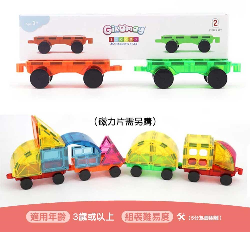 Giromag - 彩窗磁力片 擴充玩法專用小車 孖裝STEM玩具車