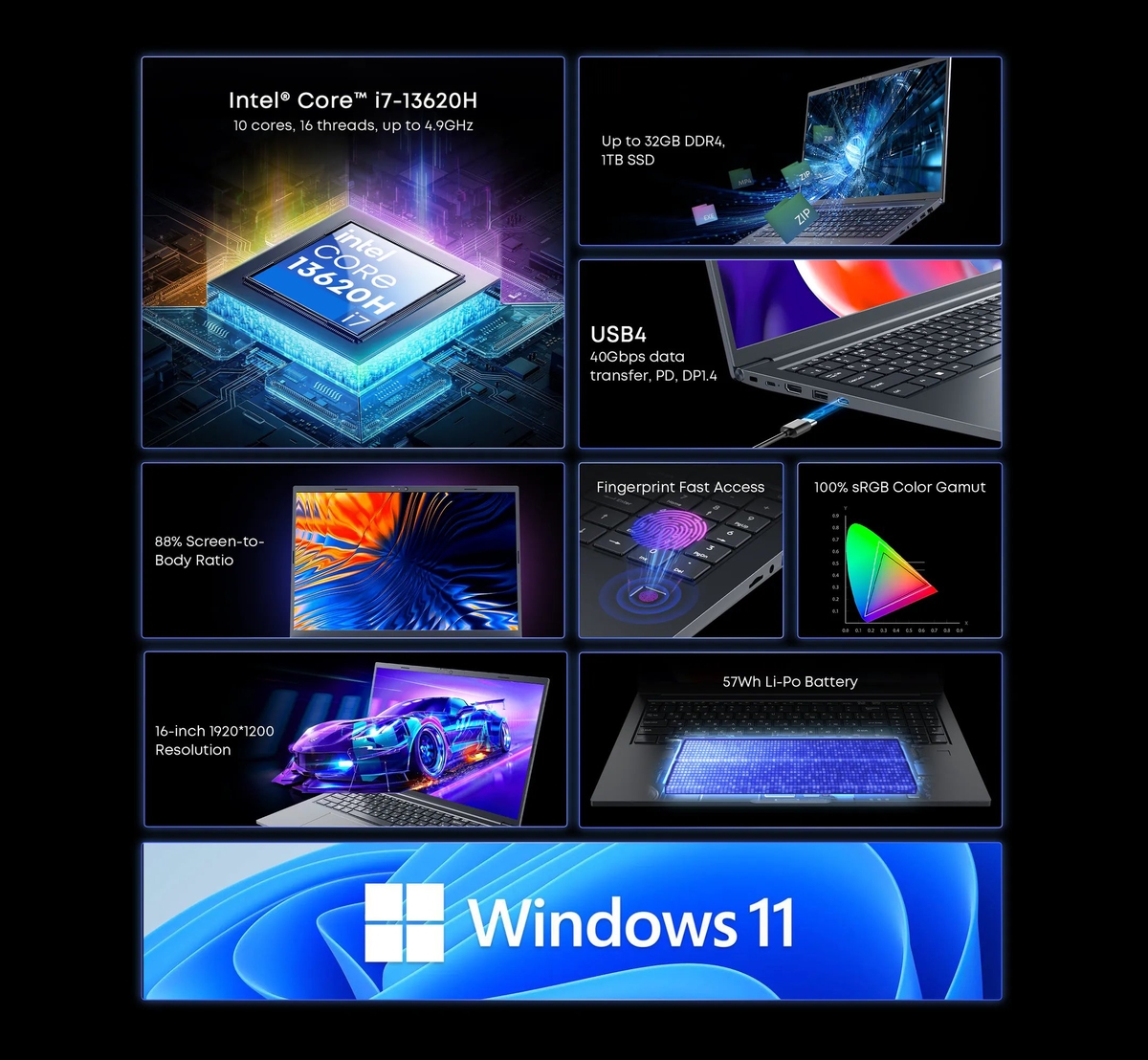 CHUWI - GTBook X 16" i7-13620H 16GB RAM+512GB SSD Windows 11 Home 手提電腦(NB-CGTBI7A/LB-PCNB)