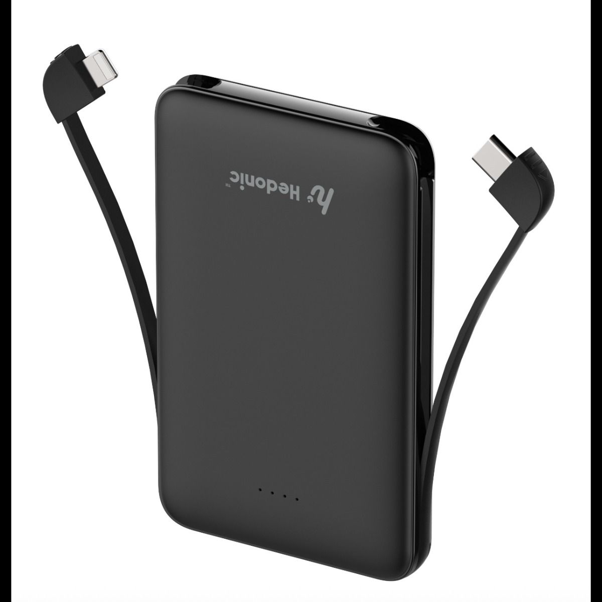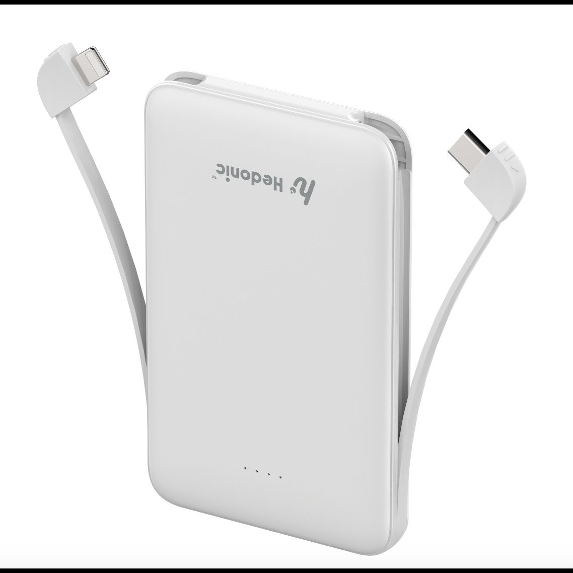 Hedonic - 5000mAh (18.5 Wh) Tiny Portable Battery with embedded Type-C & Lightning cables - 3C CCC certification - (Black/White)
