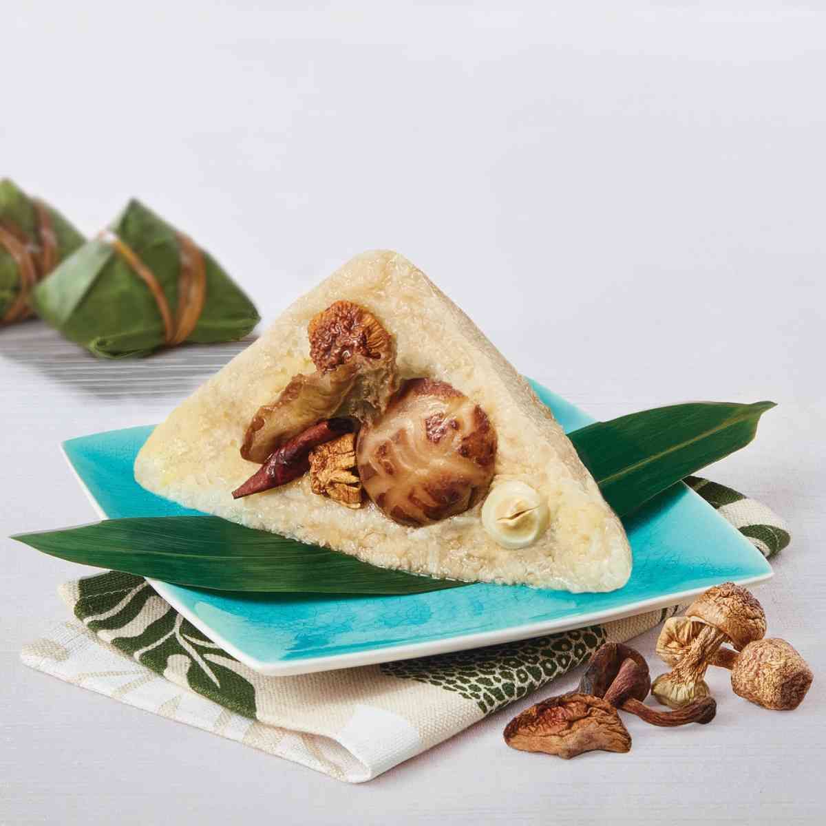 嚴選香味獨特的牛肝菌,配以營養豐富的姬松茸、加人冬菇、蓮子,口感豐富,能增強抵抗力,素食人士必試的健康糭。