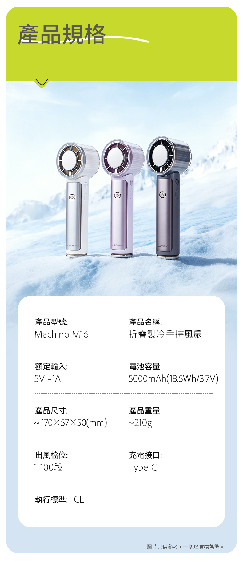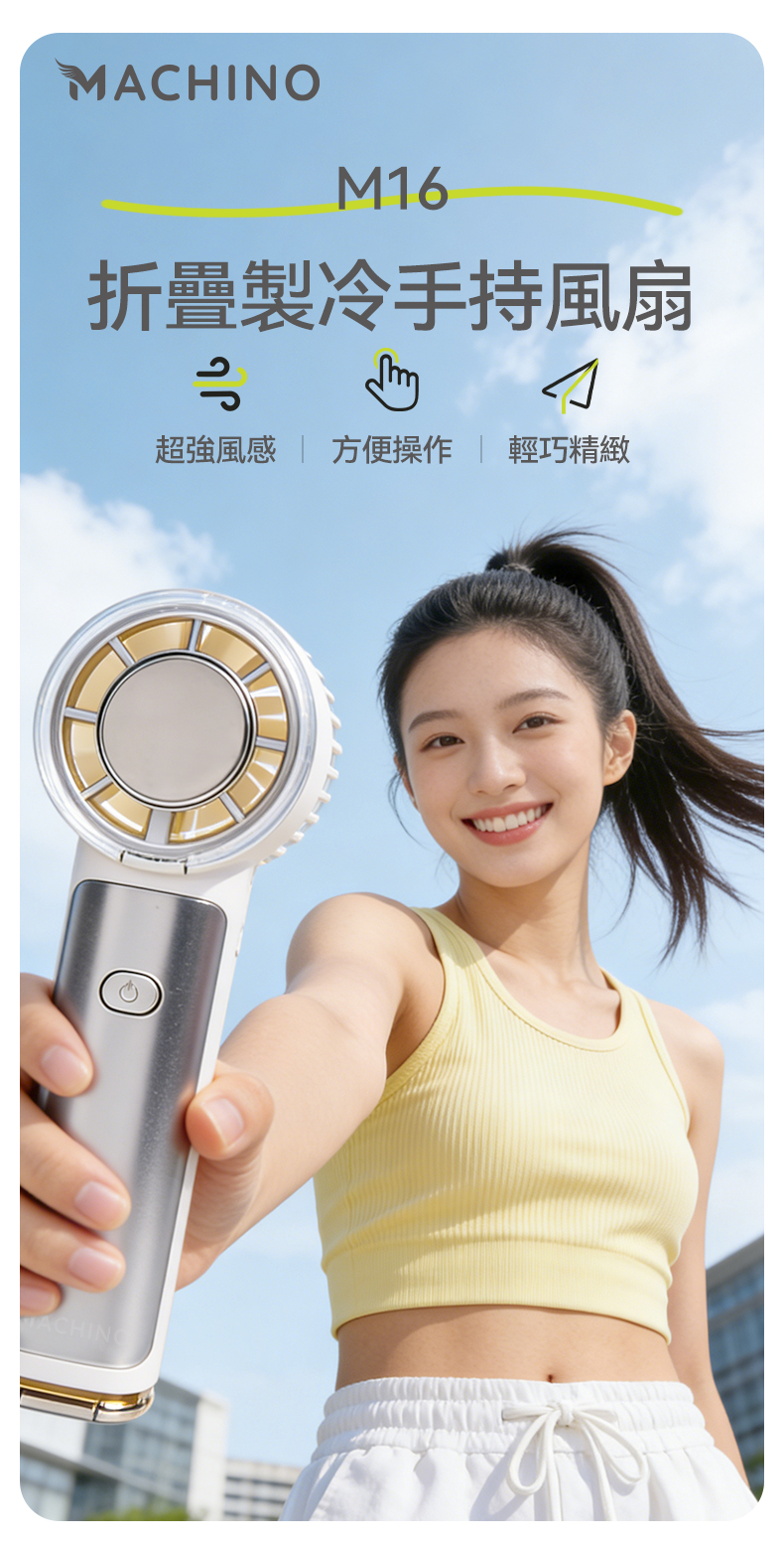 Machino - M16 折疊製冷手持風扇(黑色/紫色/白色)