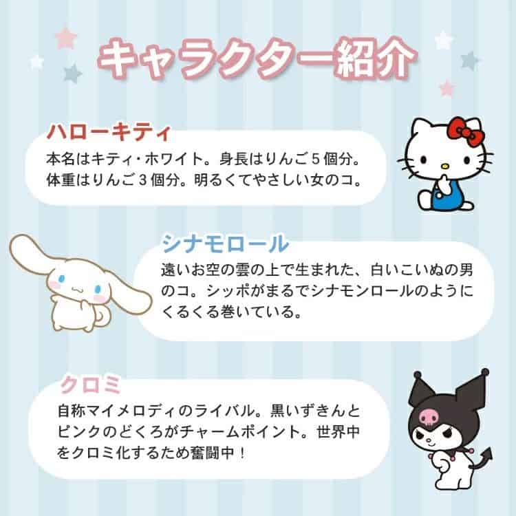 Sanrio角色聯名設計:Hello Kitty、Cinnamoroll、Kuromi