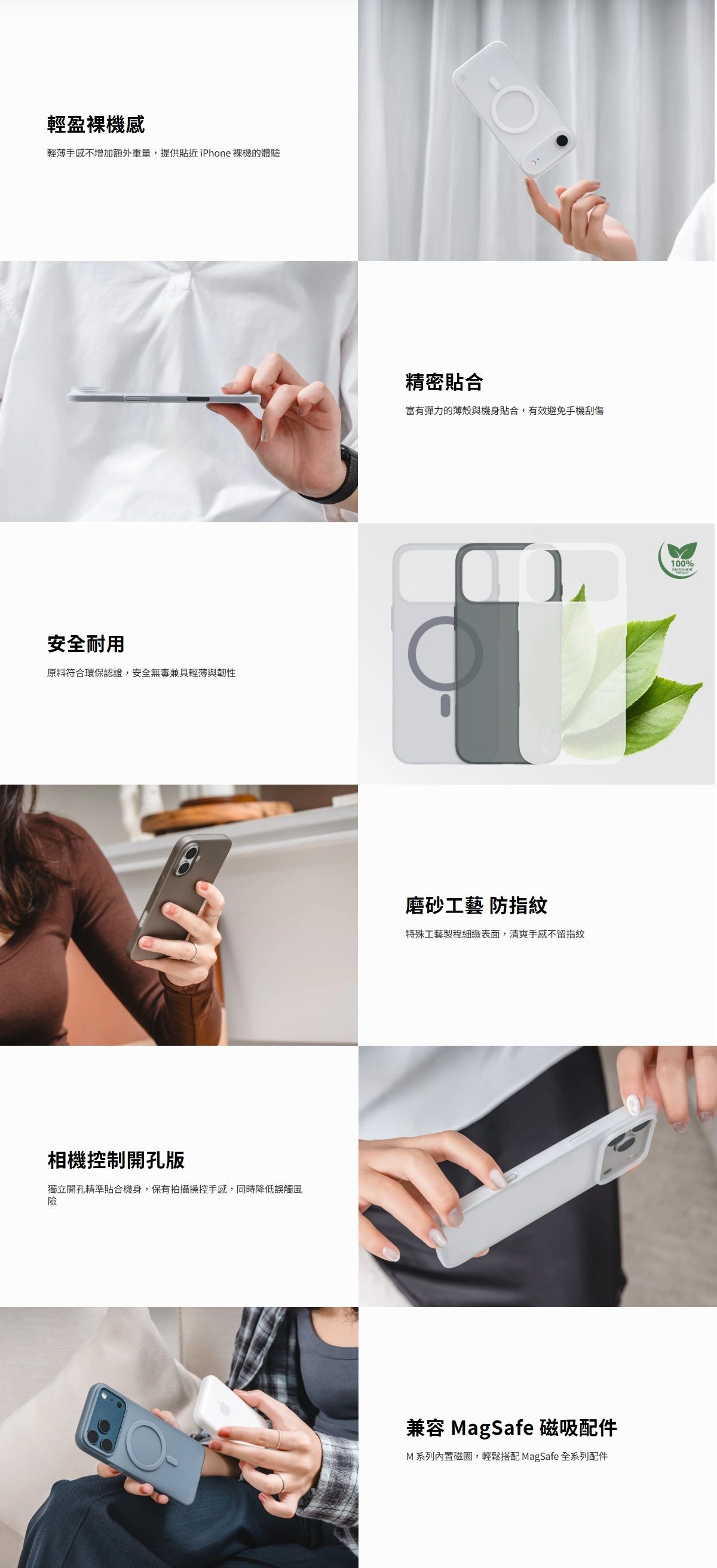 - 輕盈裸機感:輕薄手感不增加額外重量,提供貼近iPhone裸機的體驗