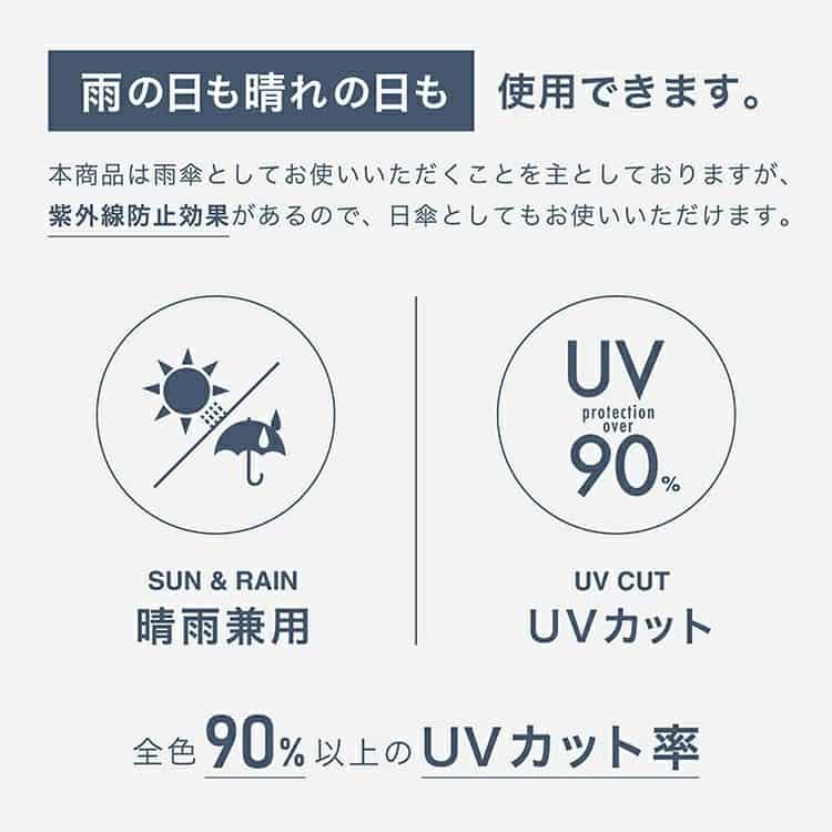 - 晴雨兩用:使用 UV Cut 90%+ 防紫外線布料