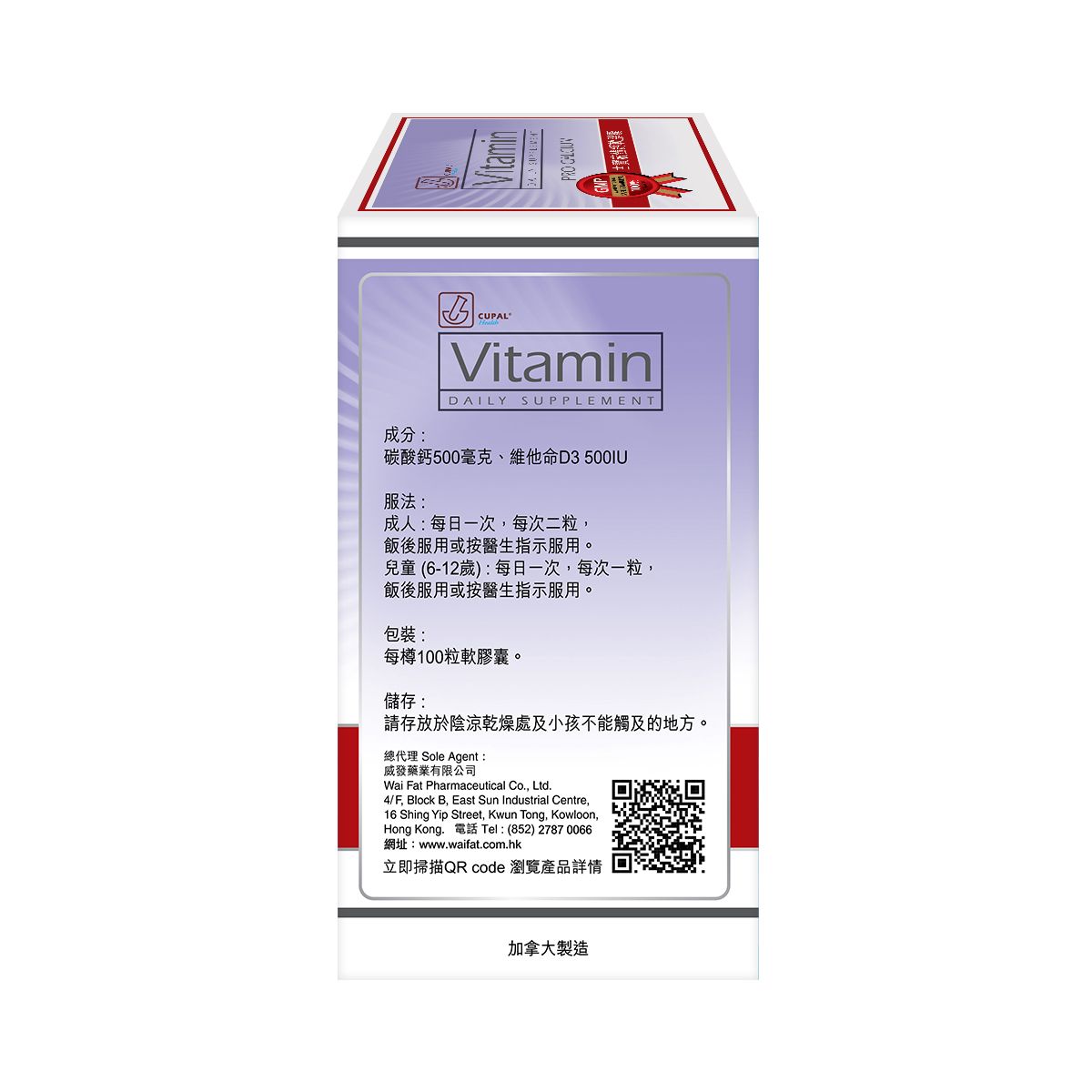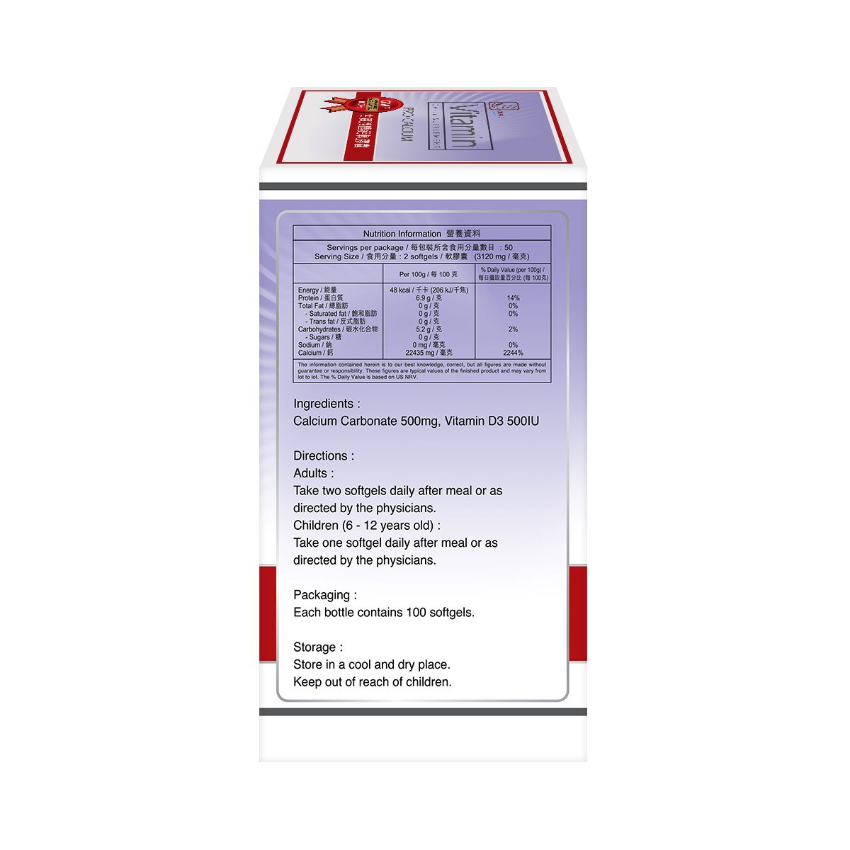 - 碳酸鈣500毫克、維他命D3 500IU