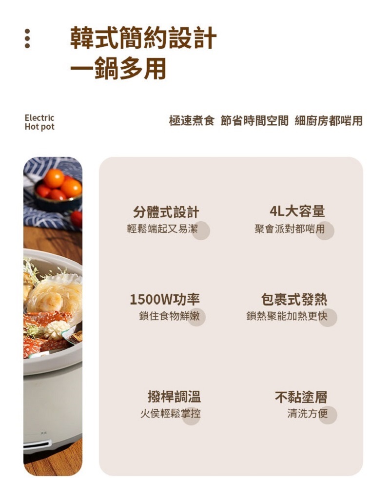 - 韓式簡約設計,一鍋多用,輕鬆駕馭煎、炒、燉、煮,一鍋搞掂。