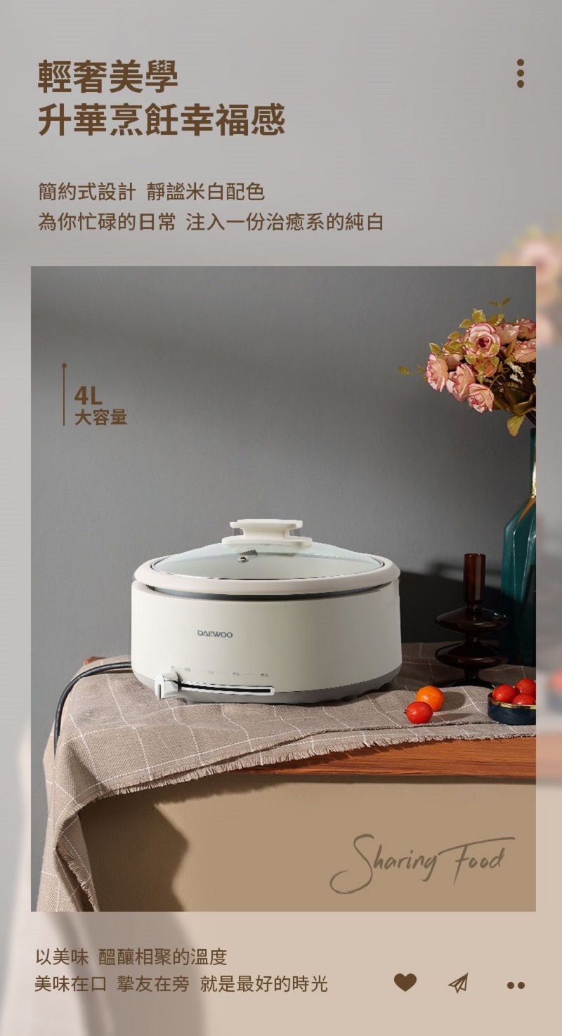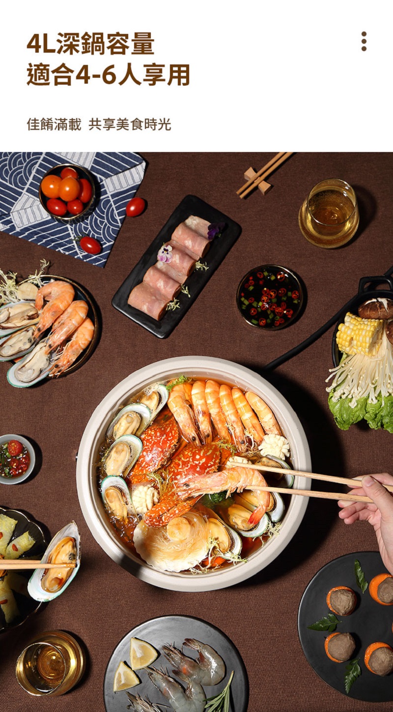 - 4L深鍋容量,輕鬆應付4-6人份量,是家庭聚會料理首選。