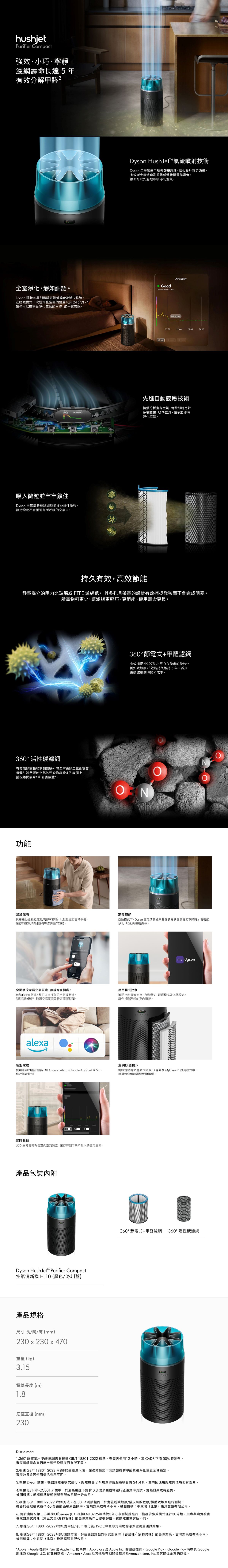 [預購] Dyson - HushJet™ Purifier Compact 空氣清新機 HJ10 (黑色/冰川藍) (預計11月尾發貨)