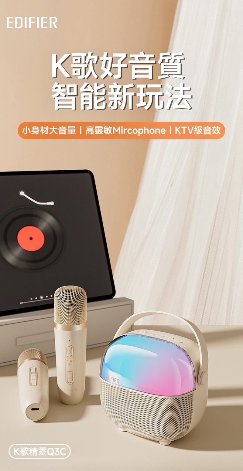 Edifier - Q3C 便携式K歌音箱 - 單咪版(白色/粉紅色) EDIFI_Q3C_ALL