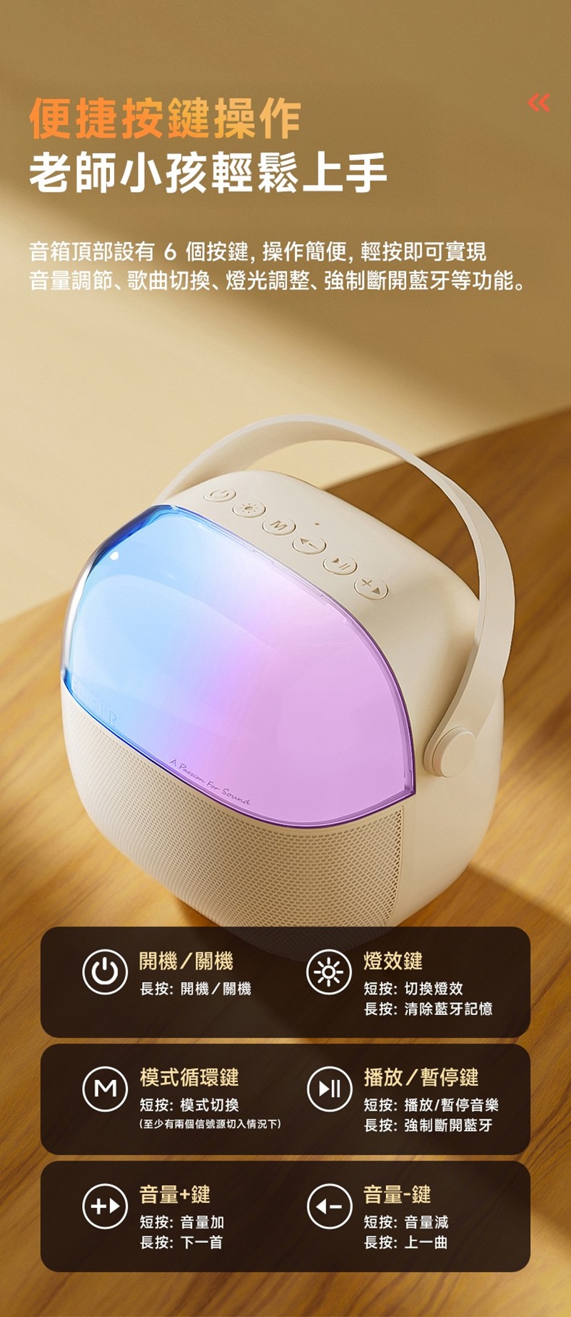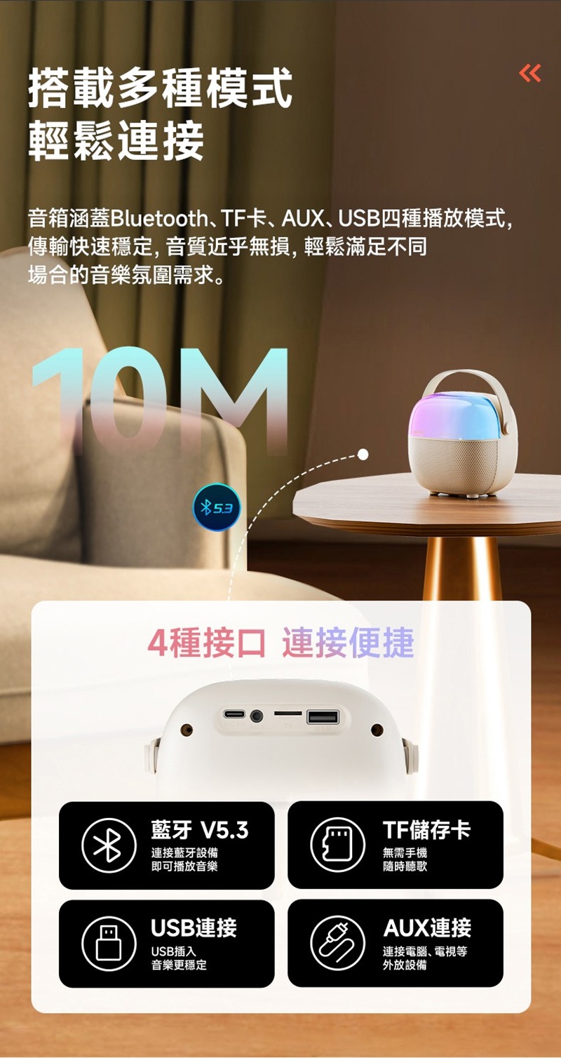 • 多種輸入︰Bluetooth | TF卡 | USB隨身碟 | AUX