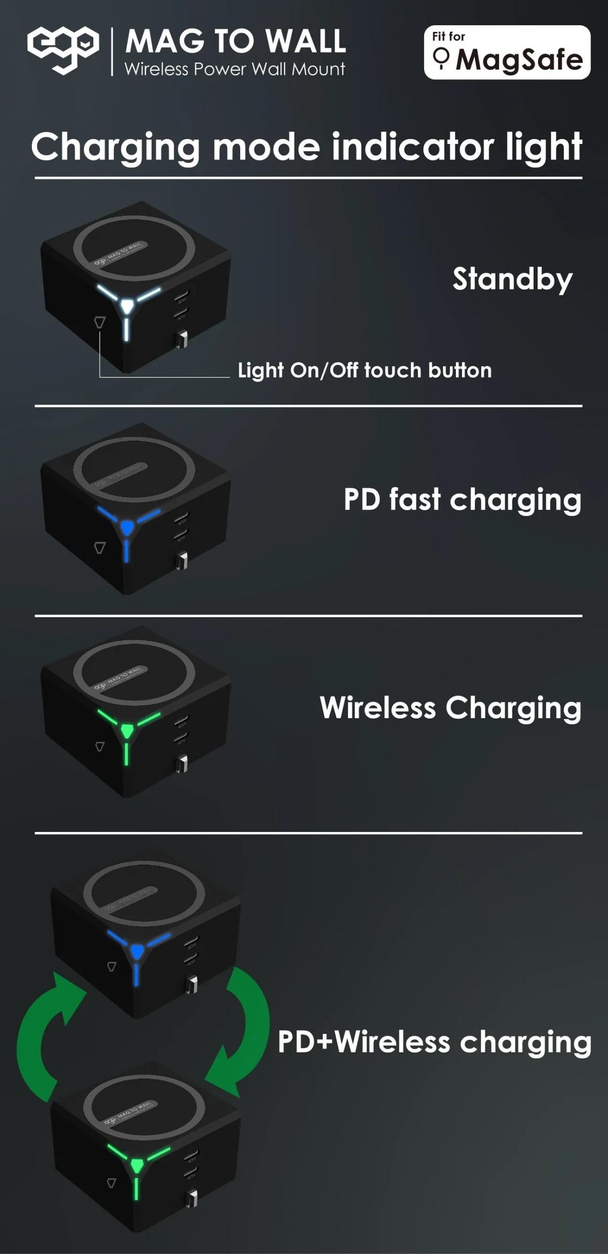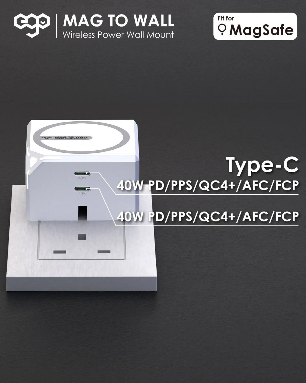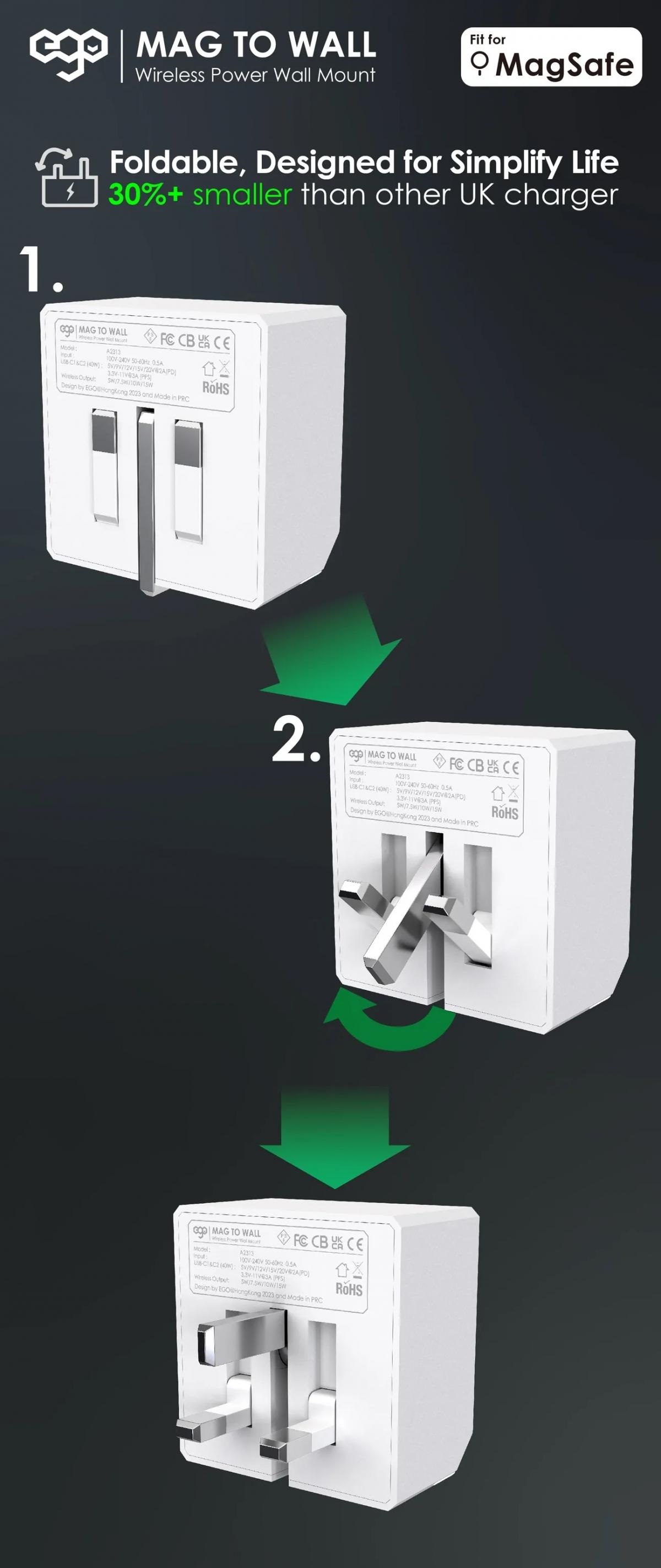 EGO - Mag To Wall @40W 磁吸摺疊插腳牆充 (黑色/白色)