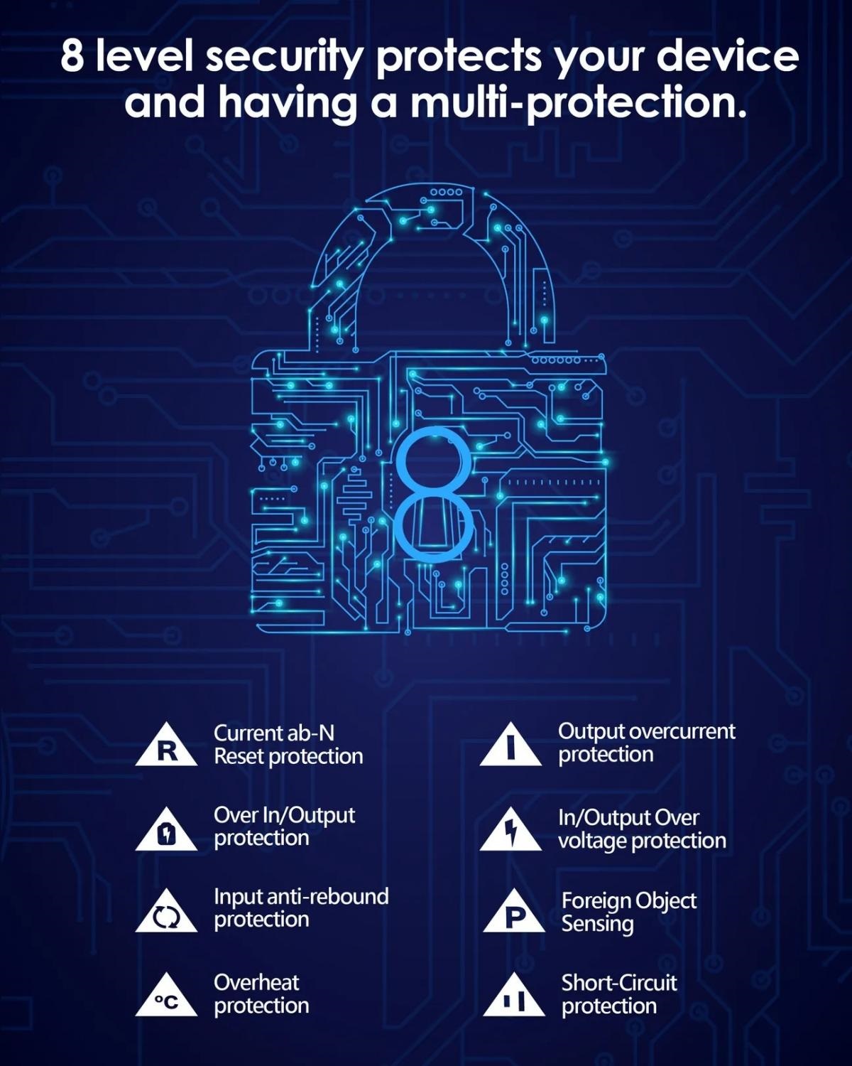 - Type-C1/C2 Output: PD:5V/3A 9V/3A, 12V/3A, 15V/2.5A, 20V/2A(40W)