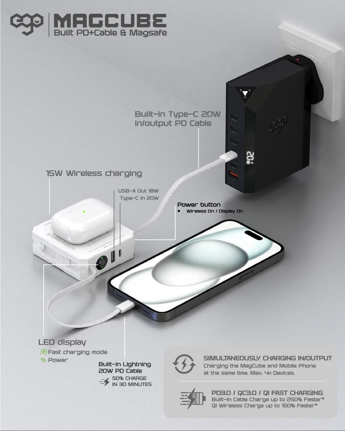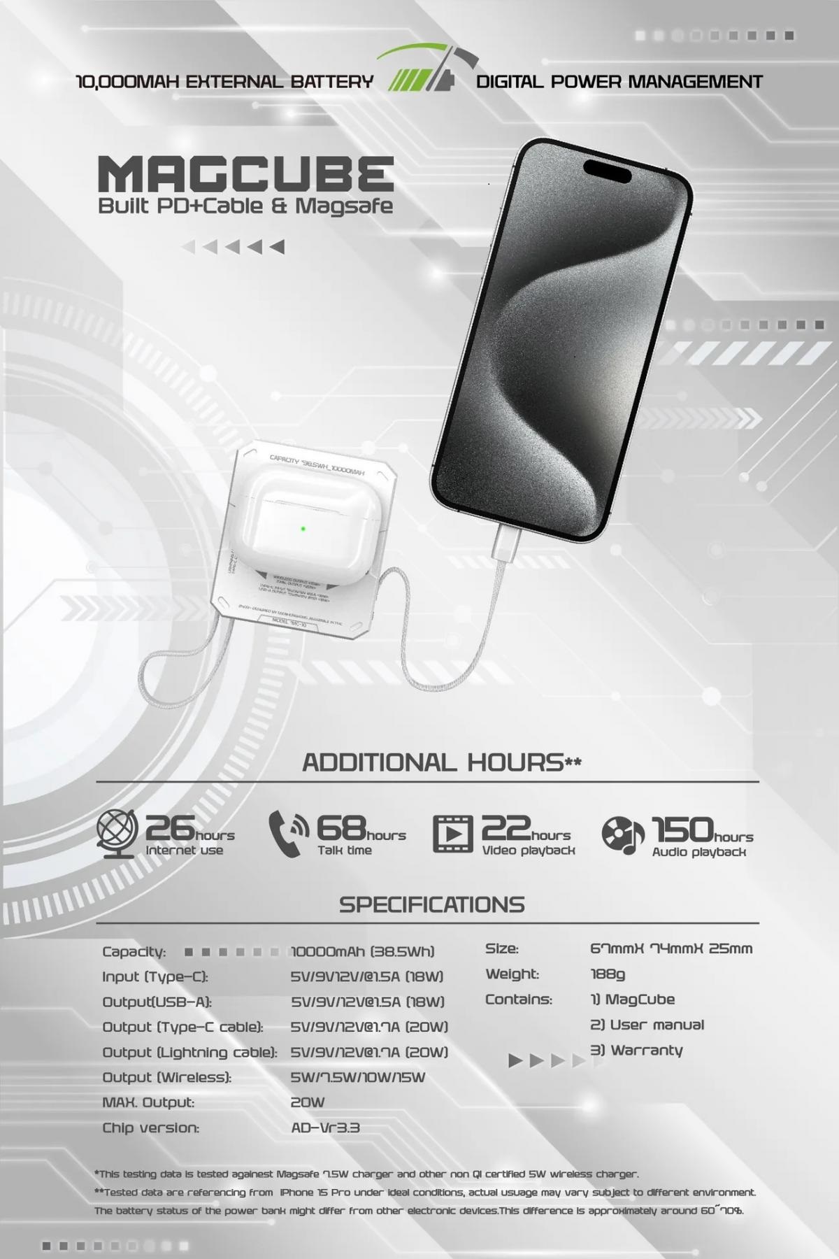 EGO - MAGCUBE 10000mAh Magsafe 移動電源 MC-10 (黑色/灰色/白色)