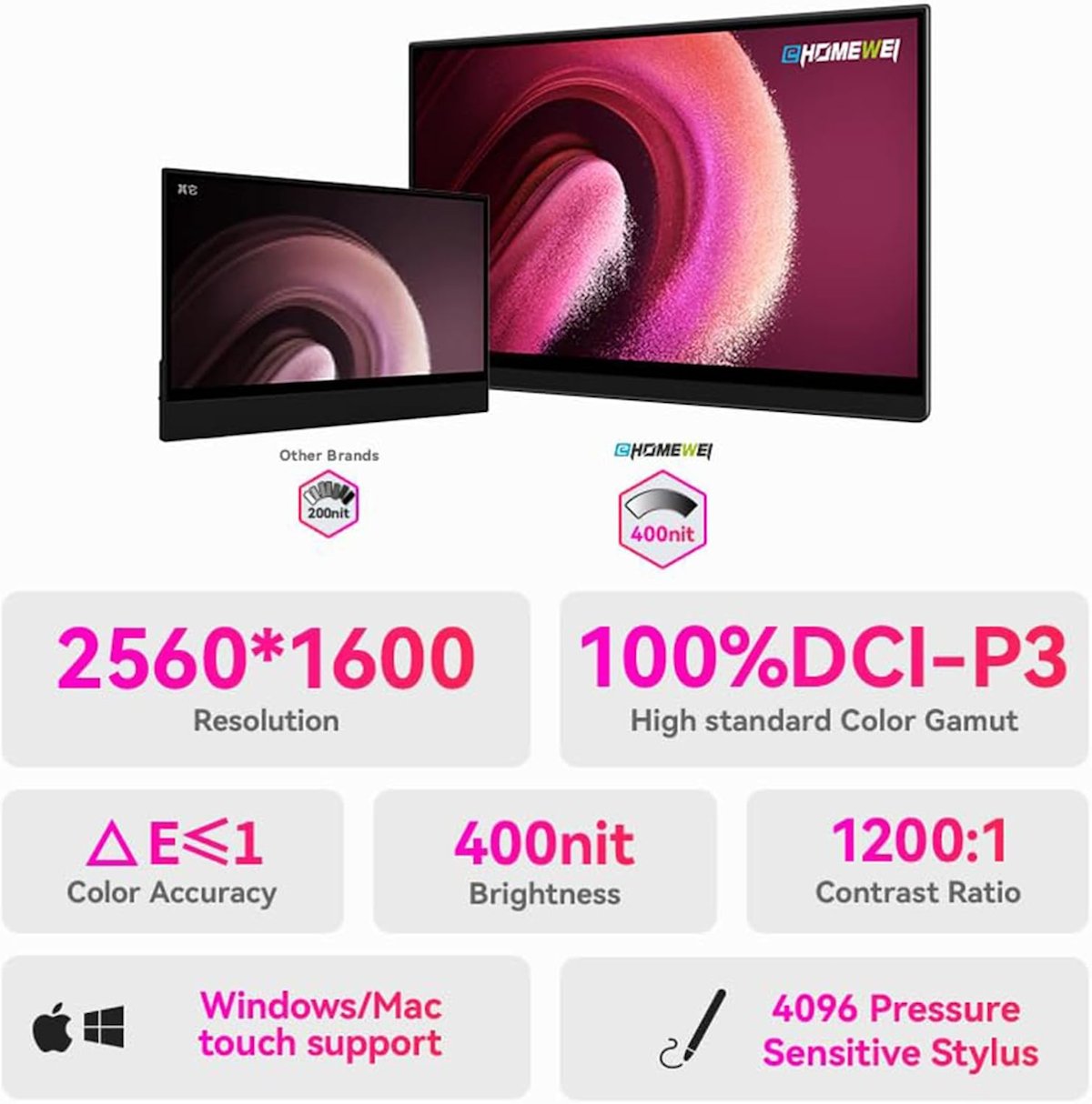 EHOMEWEI - Q8G 16" QHD+ 144Hz IPS 可觸控便攜式顯示器(MO-EQ8G+LB-MON)