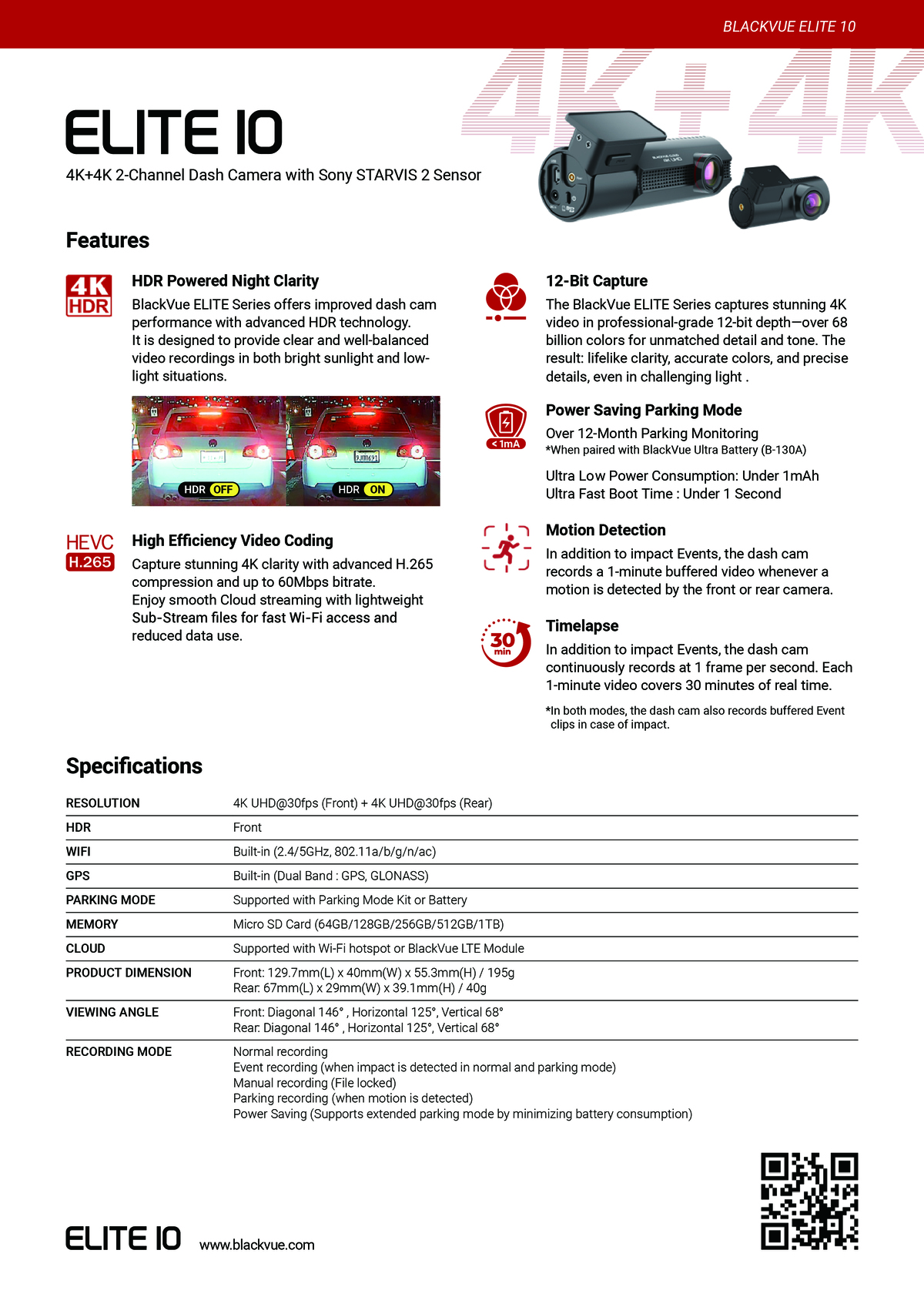 Blackvue - Elite 10 雙鏡頭行車記錄器