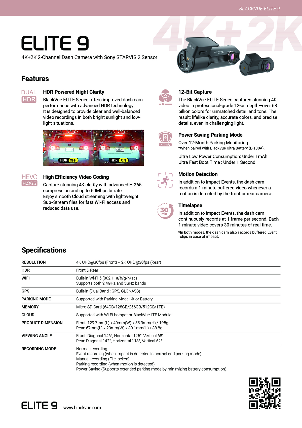 Blackvue - Elite 9 雙鏡頭行車記錄器