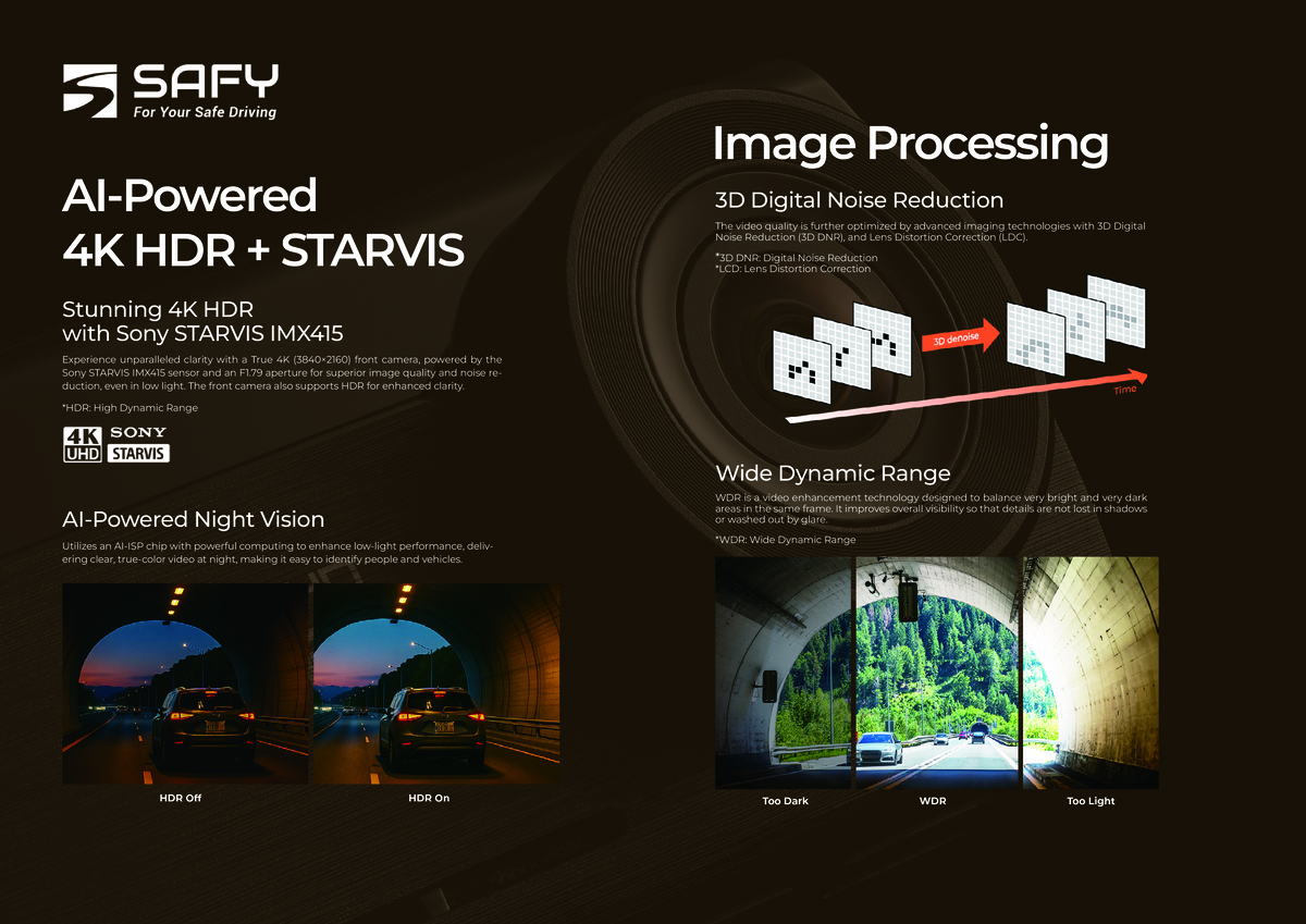 - AI 智慧夜視 - 即使在黑暗中,也能清楚地看到道路的全彩影像。