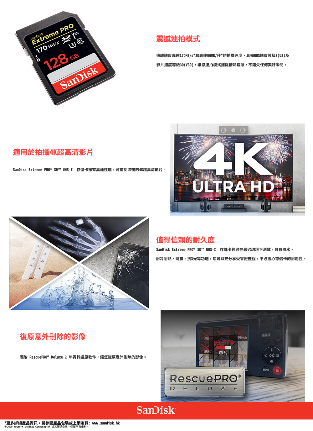 SanDisk Extreme PRO UHS-1 170MB/s 記憶卡 (SDSDXXY-GN4IN)