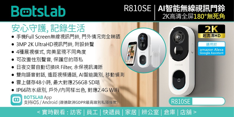 Botslab - R810SE 2K AI 智能無線視訊門鈴 (白色)