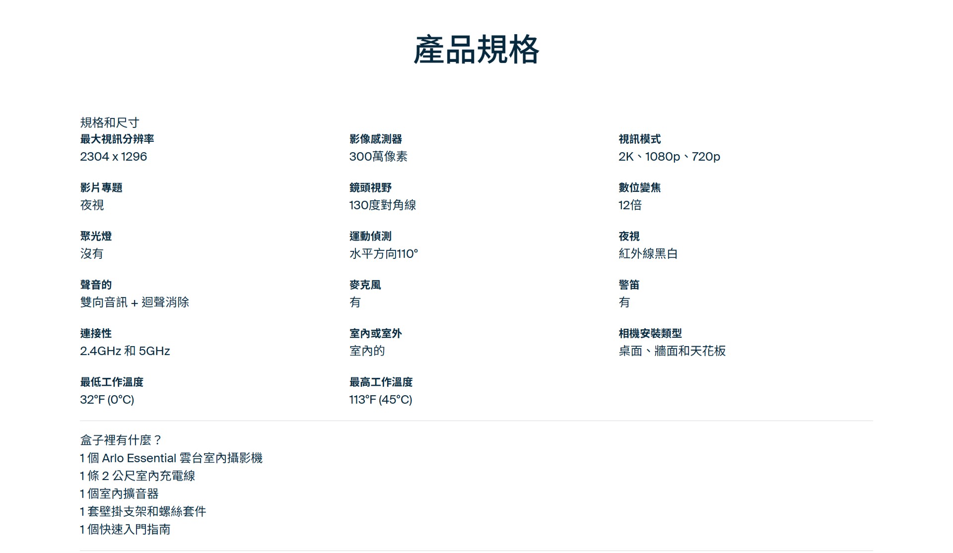• 進階功能:包含 Arlo Secure 方案試用,試用後需付費維持 30 天雲端儲存、AI 功能等。