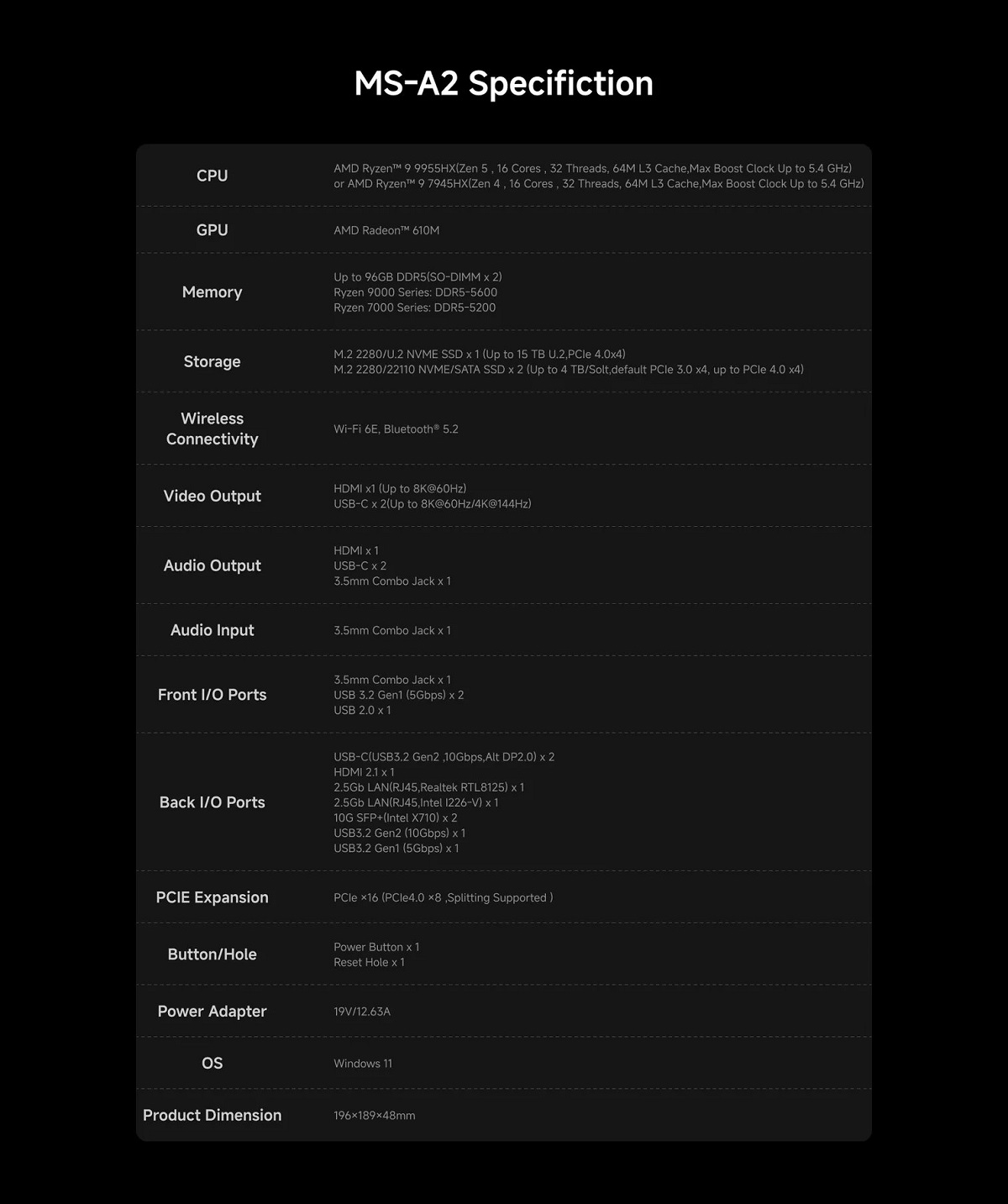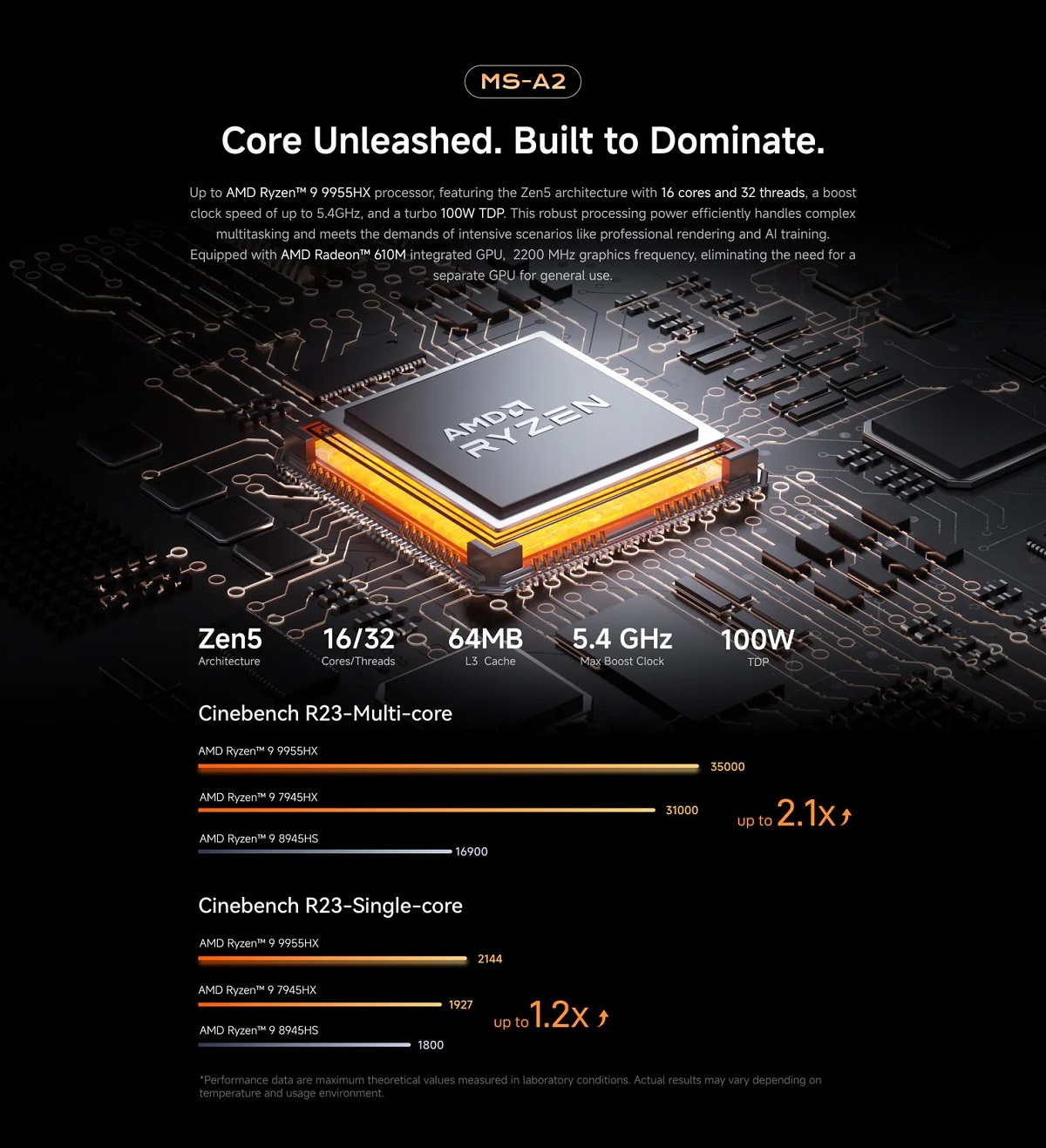 - MS-A2 / AMD Ryzen™ 9 7945HX / AMD Radeon™ 610M