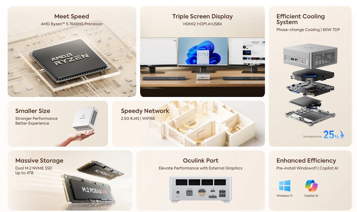 Minisforum - UM760 Plus Ryzen5 7640HS 64GB RAM + 1TB SSD Windows 11 Pro 迷你電腦(CS-MUM76PB)