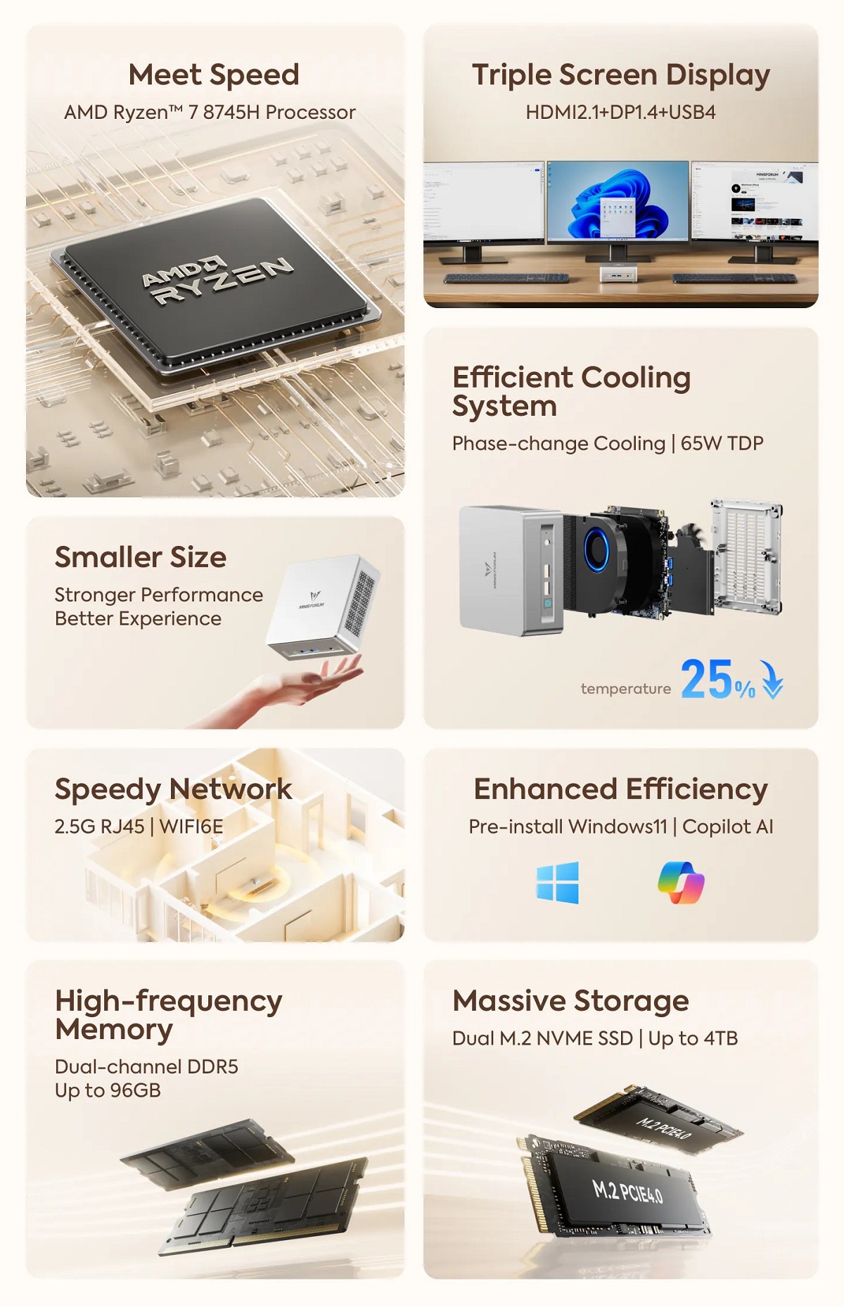 - 2*8 GB DDR5 SO-DIMM 5600 MHz Slots (up to 2*48 GB)