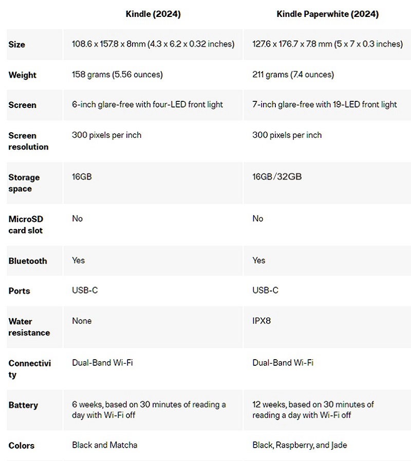 • 支援格式:Kindle Format 8 (AZW3)、Kindle (AZW)、TXT、PDF、未受保護的 MOBI、PRC 原生格式,以及經轉換的 PDF、DOCX、DOC、HTML、EPUB、TXT、RTF、JPEG、GIF、PNG、BMP
