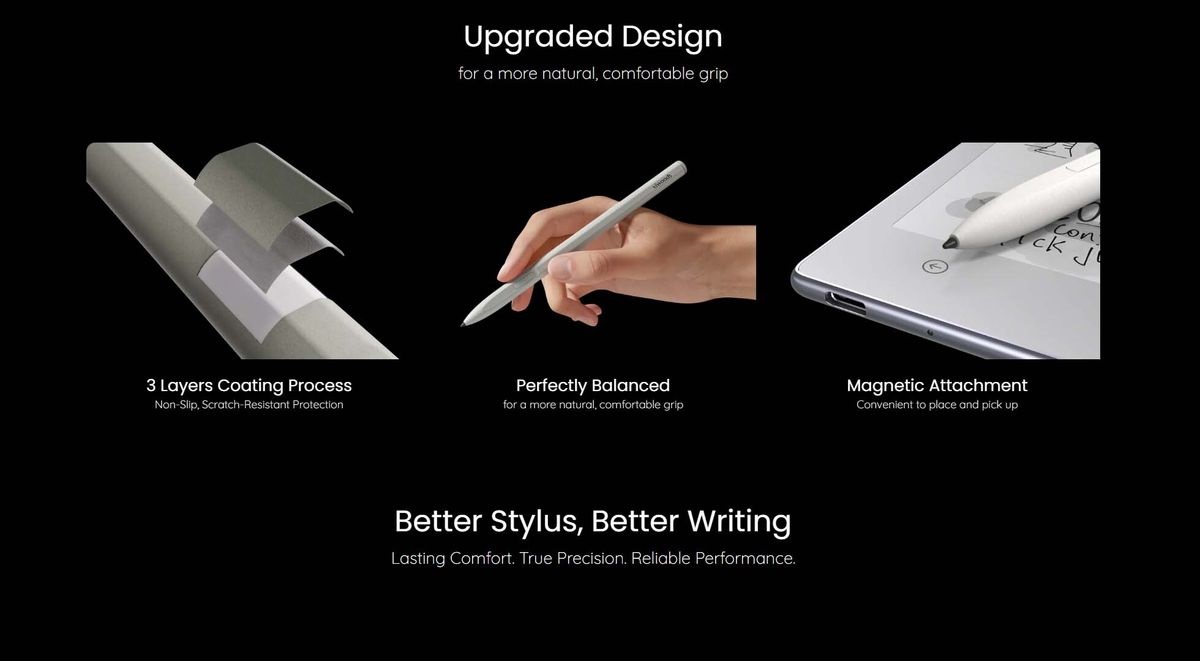 繼續閱讀,您將了解它的工作原理、與毛氈和聚甲醛 (POM) 材質的對比、它對耐用性和屏幕安全性的意義,然後您可以在幾分鐘內決定這款升級版觸控筆是否是您下一款用於 Viwoods 紙質平板電腦及其他設備的日常觸控筆。現在就讓我們一起深入了解這款陶瓷筆尖觸控筆,解鎖更清晰的線條、更長的使用壽命和更少的筆更換次數。