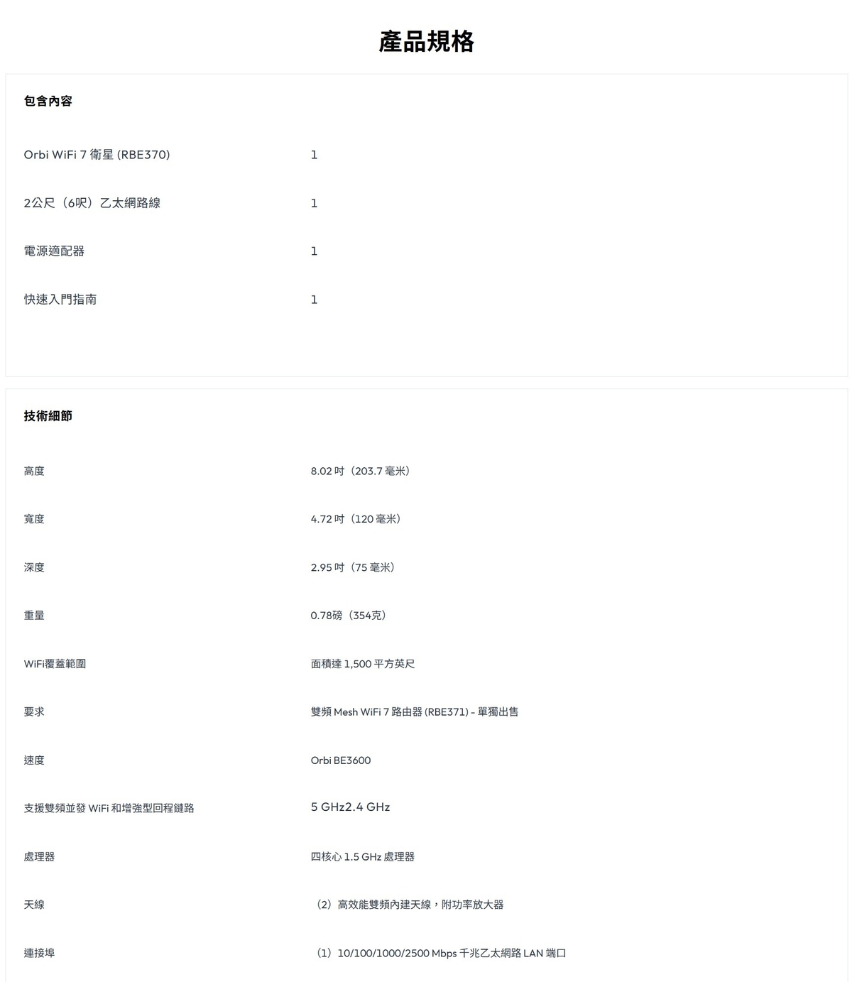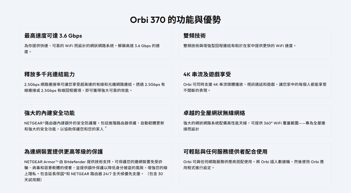 NETGEAR - Orbi (RBE370) 雙頻 BE3600 Mesh WiFi 7 衛星分機 (不能獨立操作,需配合370 系列主機使用)