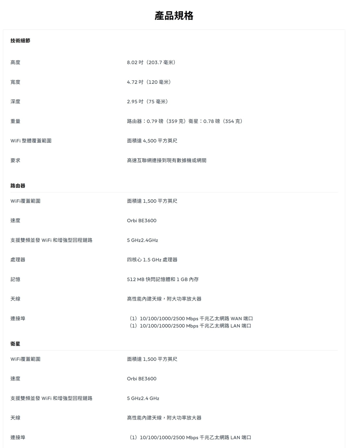 - 路由器:1個 2.5G WAN端口,1個 2.5G LAN端口,衛星:1個 2.5G LAN端口